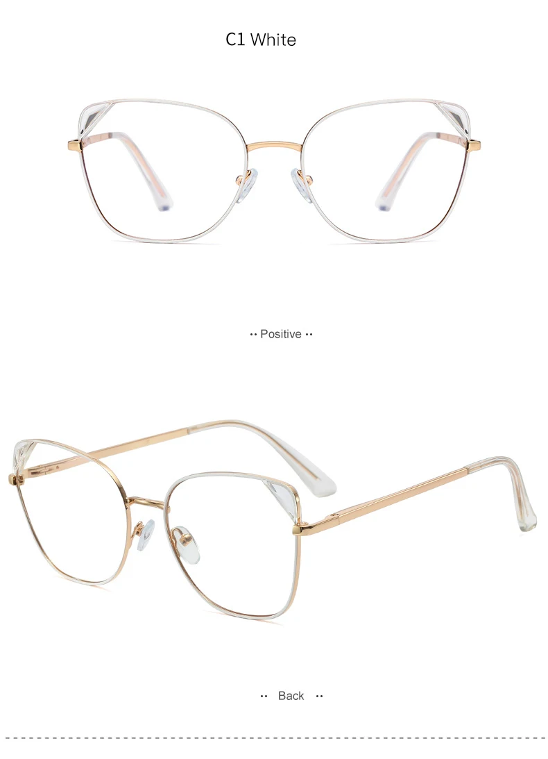 Очки для чтения с защитой от сисветильник, увеличительные линзы, женские металлические очки с белой оправой и прозрачными линзами с диоптриями 2021, модные очки от 0 до + 6