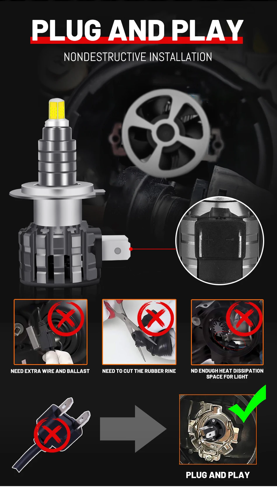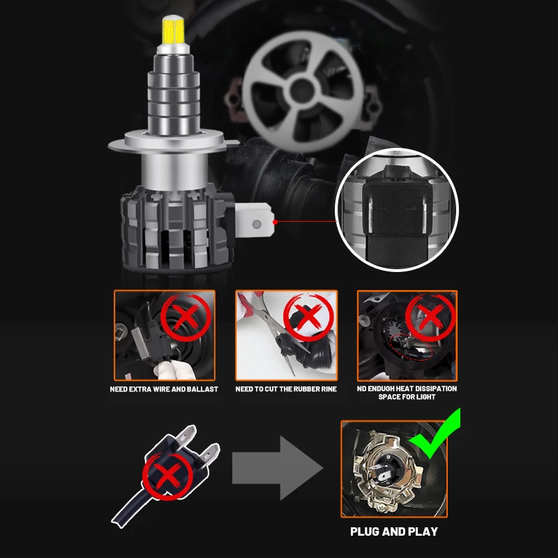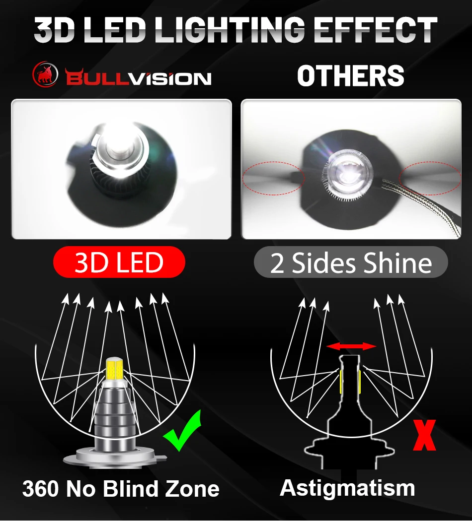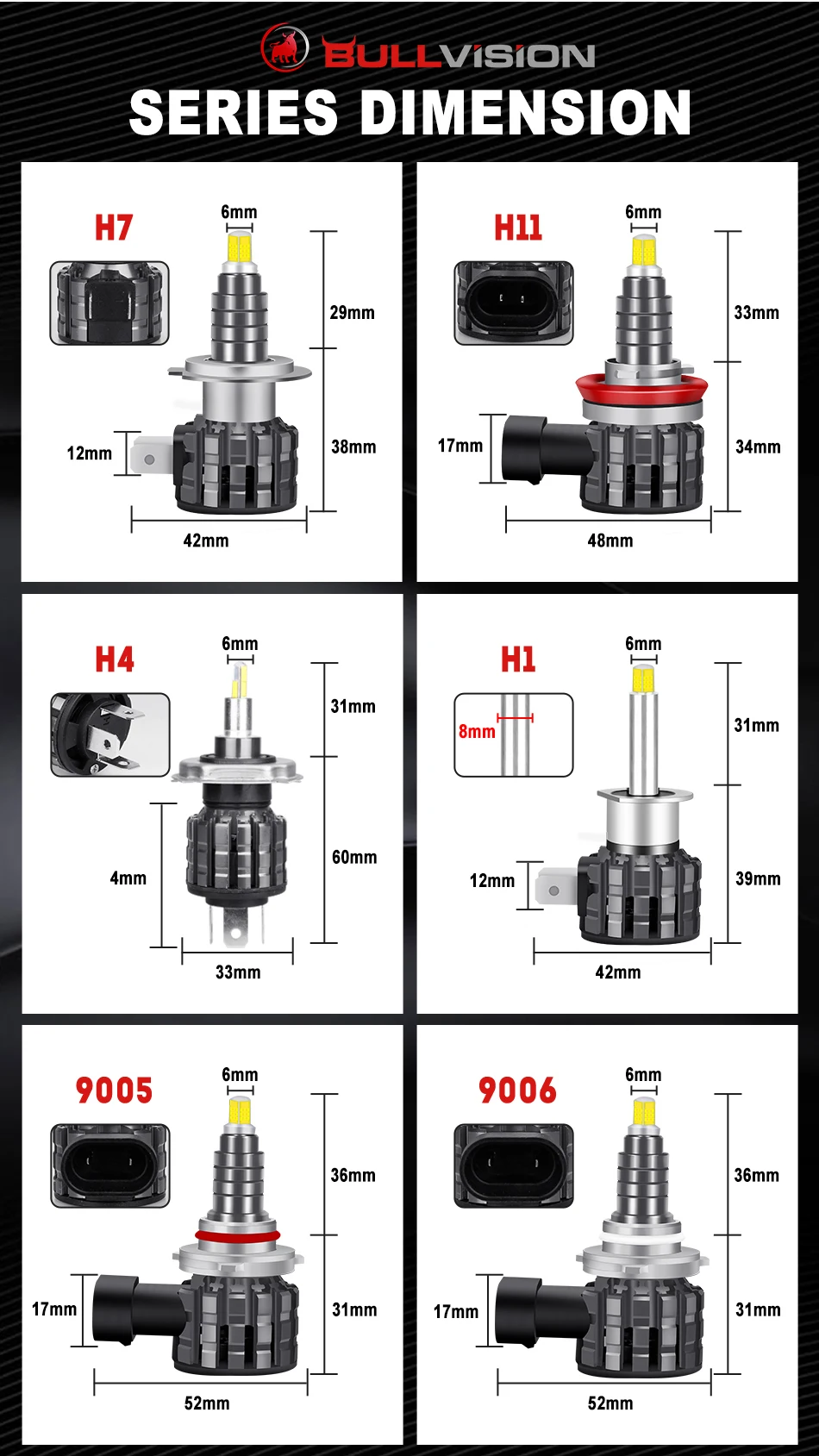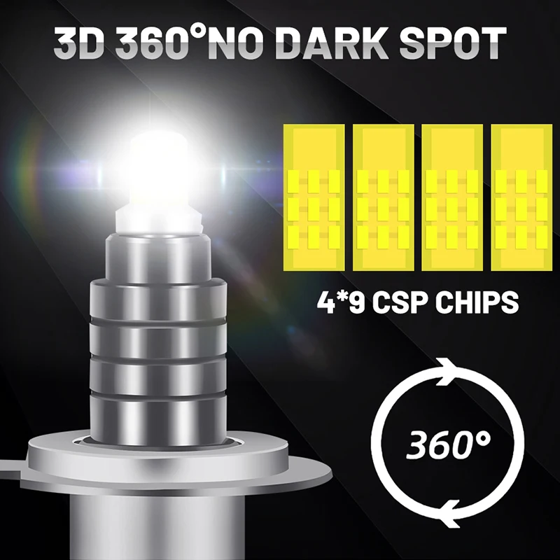 Светодиодные лампы для автомобильных фар, H7, H11, H4, 360, H1, 9005, 9006 лм, 6000 К