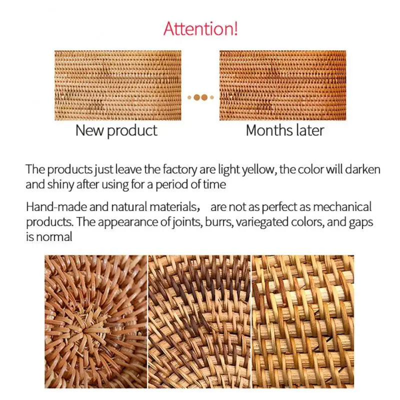 5. Внимание!: из-за использования натурального ротанга и ручной работы, разница в цвете и небольшая разница в размере являются нормальными. Цвет салфетки станет темнее с использованием времени, а также могут появиться швы и зазоры. Выбирайте внимательно.