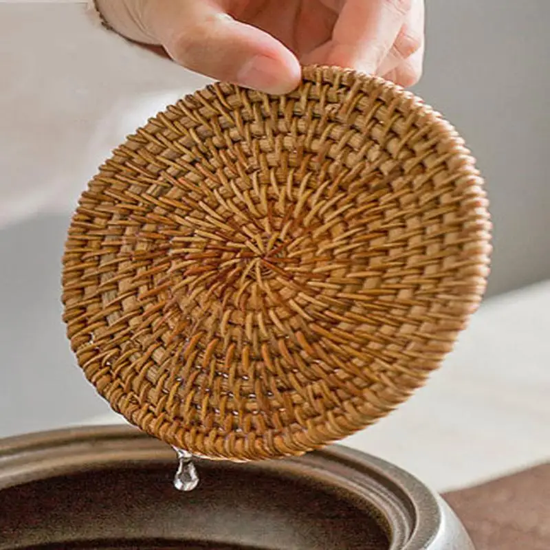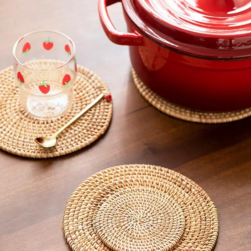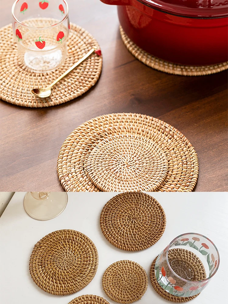 Подставка из ротанга, теплоизоляционный коврик в стиле ретро для чайного журнального столика, диаметр 8-20 см, аксессуары для стола