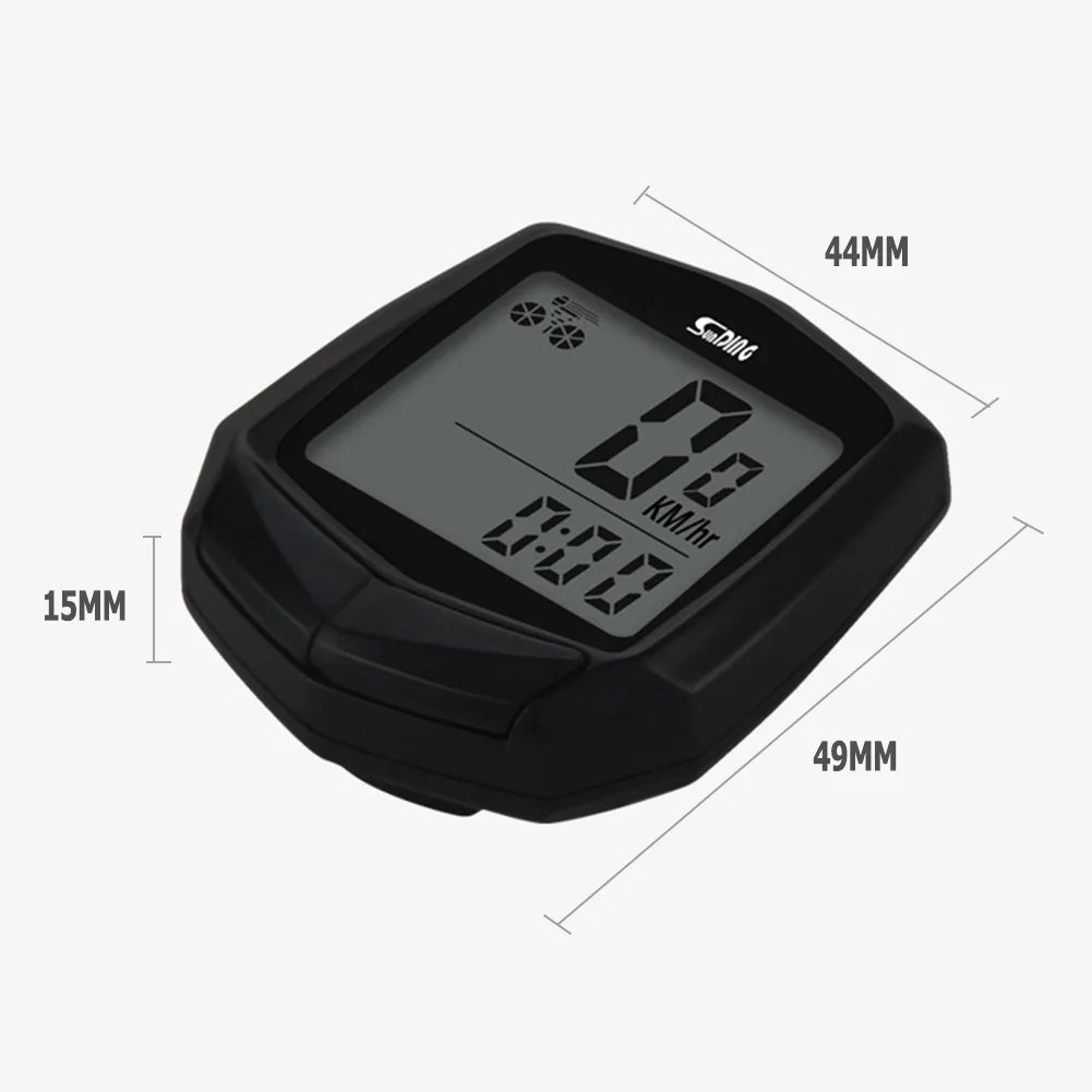 Водонепроницаемый велосипедный компьютер Водонепроницаемый Горный Дорожный велосипед одометр спидометр велосипедный, проводной Секундомер аксессуары для верховой ездыХарактеристика:1. Маленький и изысканный дизайн, многофункциональный и практичный;2. Водонепроницаемая защита. Что делает его можно использовать даже в дождливый день.3. Если нет входного сигнала для 300s, он превратится в режим ожидания.4. С входом сигнала вождения или нажатием любой кнопки, вы можете вернуться в режим перед выключением, и запоминать различные данные перед выключением.Спецификация:Материал корпуса: АБС-пластикЦвет изделия: черныйРазмер продукта: около 49x44x1 5 мм/1.931,73 * 0.6inВес нетто продукта: около 65 гИсточник питания: 1 * AG10 аккумулятор (встроенный)Примечание:В связи с различиями мониторов и эффектами освещения реальный цвет товара может немного отличаться от цвета на фотографиях. Спасибо!Возможны отклонения в 1-2 см вследствие измерений вручную.