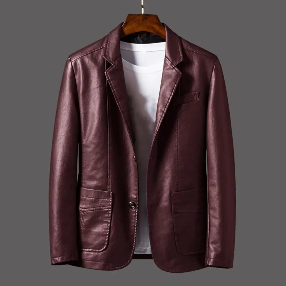 Мужская кожаная куртка с отложным воротником, однотонный кардиган из искусственной кожи, деловая куртка для встреч, однотонный цвет