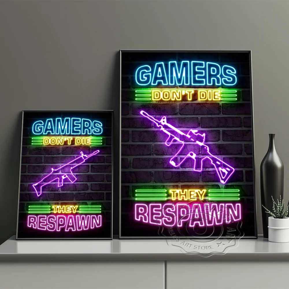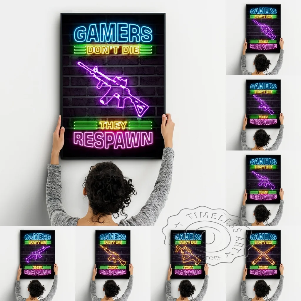 Современное игровое искусство, неоновая Картина на холсте, пистолет, игровые плакаты и принты, настенные художественные картины для украшения детской комнаты