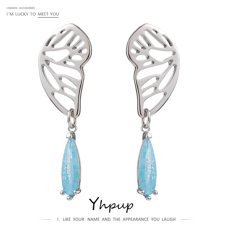 Модные металлические синие фианитовые висячие серьги Yhpup, массивные металлические геометрические медные серьги, аксессуары, бижутерия, подарок для женщин