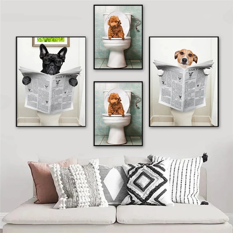 Украшение для туалета, животное, собака, креативный холст, индивидуальная настенная живопись, зоомагазин