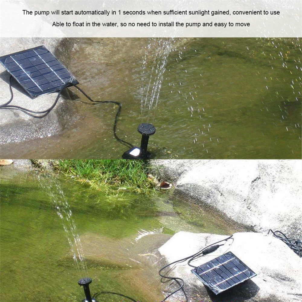 Удобный функциональный дизайн: простой в чистке, легко перемещается в разные места, не требуется штепсельная вилка, компактный, несколько фонтанных головок для различных моделей воды, просто подключите панель солнечных батарей и насос, как только солнечная панель достигнет достаточно солнечного света, она будет работать автоматически.
