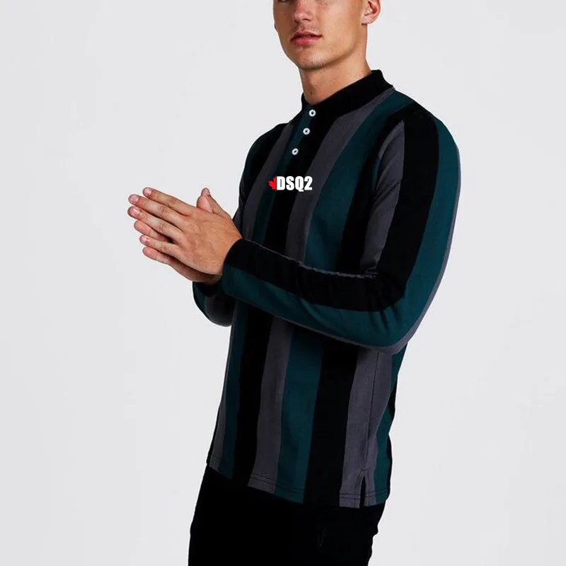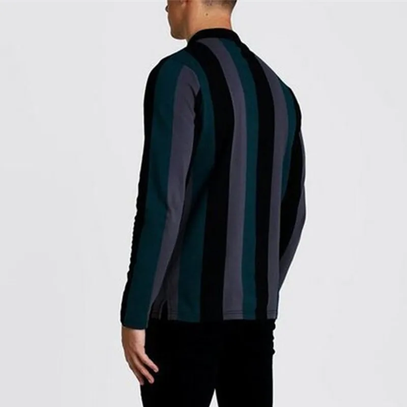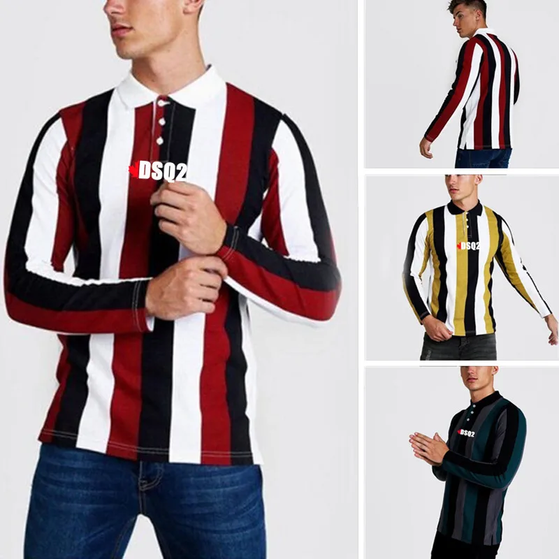 Весна-Осень 2021, модные полосатые Лоскутные Топы с длинным рукавом для мужчин, женская повседневная мужская футболка с отложным воротником и пуговицами