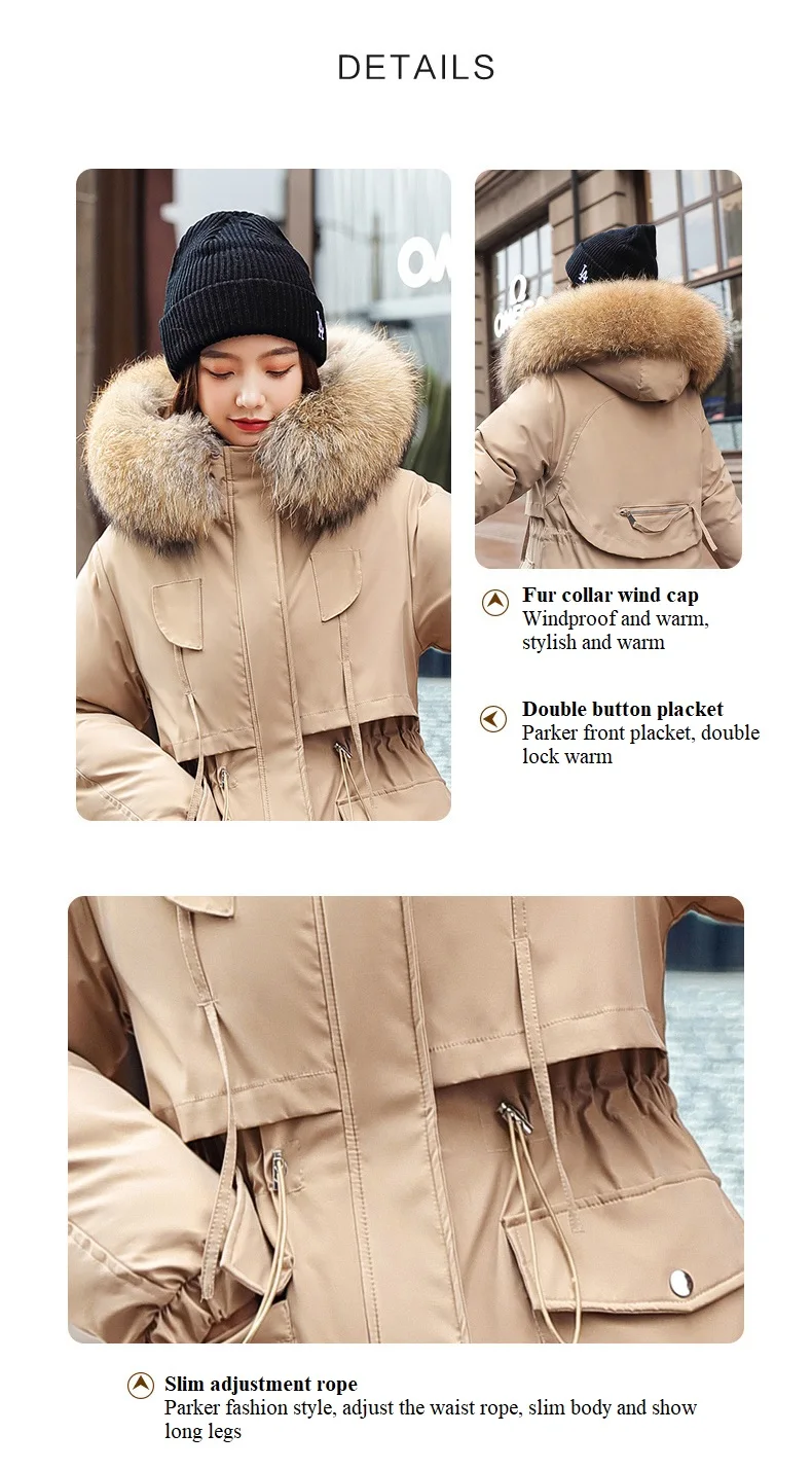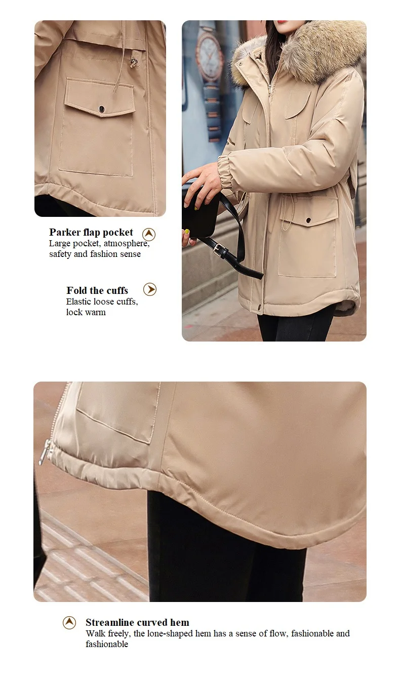 ❤Подробная информация❤Штормовка с меховым воротникомВетрозащитный и теплый, стильный и теплыйДвойная планка на пуговицахParker передняя планка, двойной замок теплыйТонкий регулируемый КанатПаркер модный стиль, отрегулируйте талию веревку, стройнит тело и показывает длинные ногиКарман с клапаном ParkerБольшой карман, атмосфера, безопасность и чувство модыСложите манжетыЭластичные свободные манжеты, теплыеОбтекаемая изогнутая кромкаСвободно ходить, подол в форме одиночки имеет ощущение потока, модно и модно