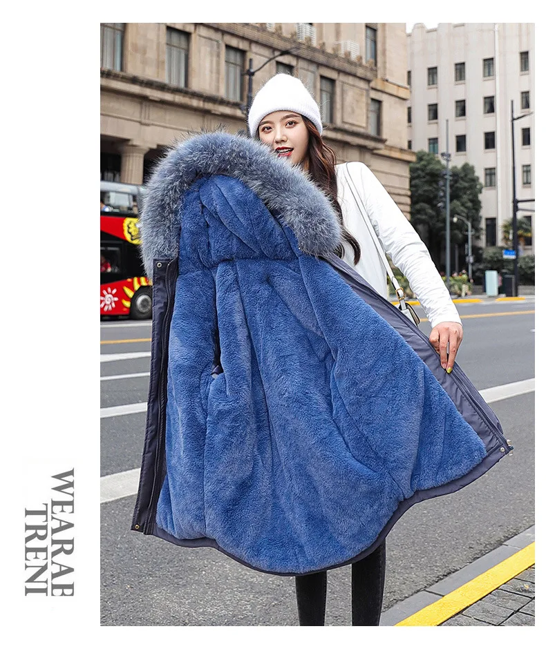 Женская теплая зимняя парка с капюшоном, пальто с флисовой подкладкой, длинная толстая зимняя куртка с искусственным мехом