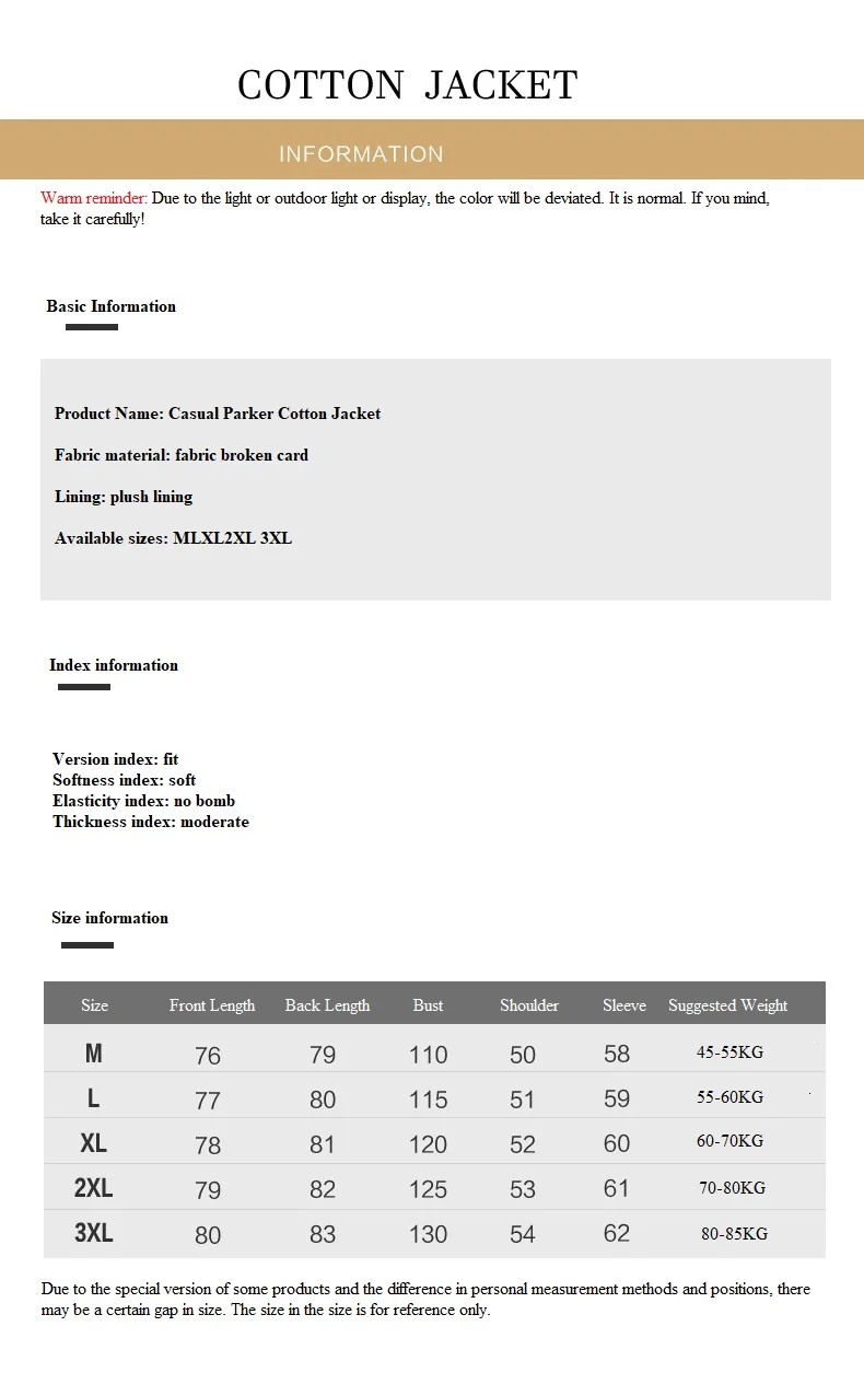 TipsPlease measure before buying this jacket and follow the size