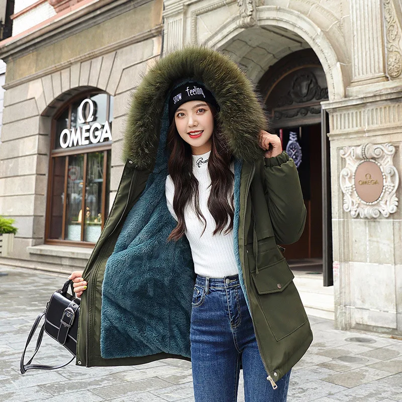 Женская теплая зимняя парка с капюшоном, пальто с флисовой подкладкой, Длинная зимняя плотная куртка с искусственным мехом