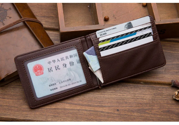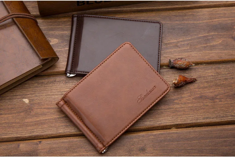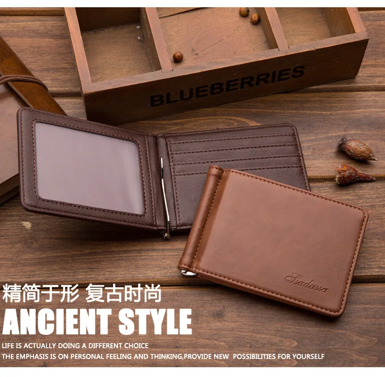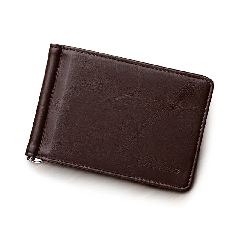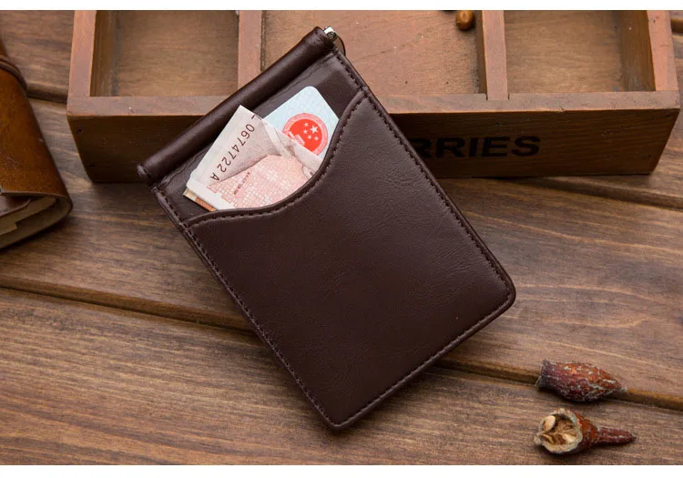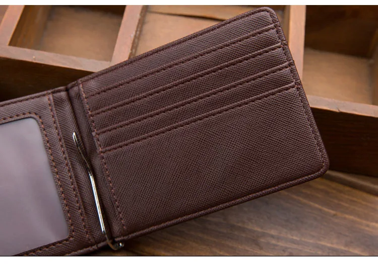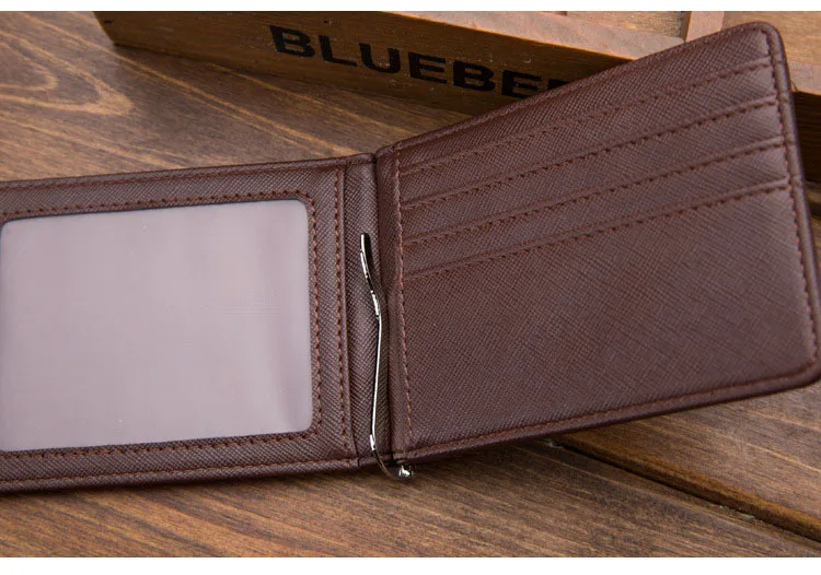 Тонкий мужской кожаный кошелек с отделениями для карт, металлический зажим, держатель для фото, маленький кошелек для мужчин