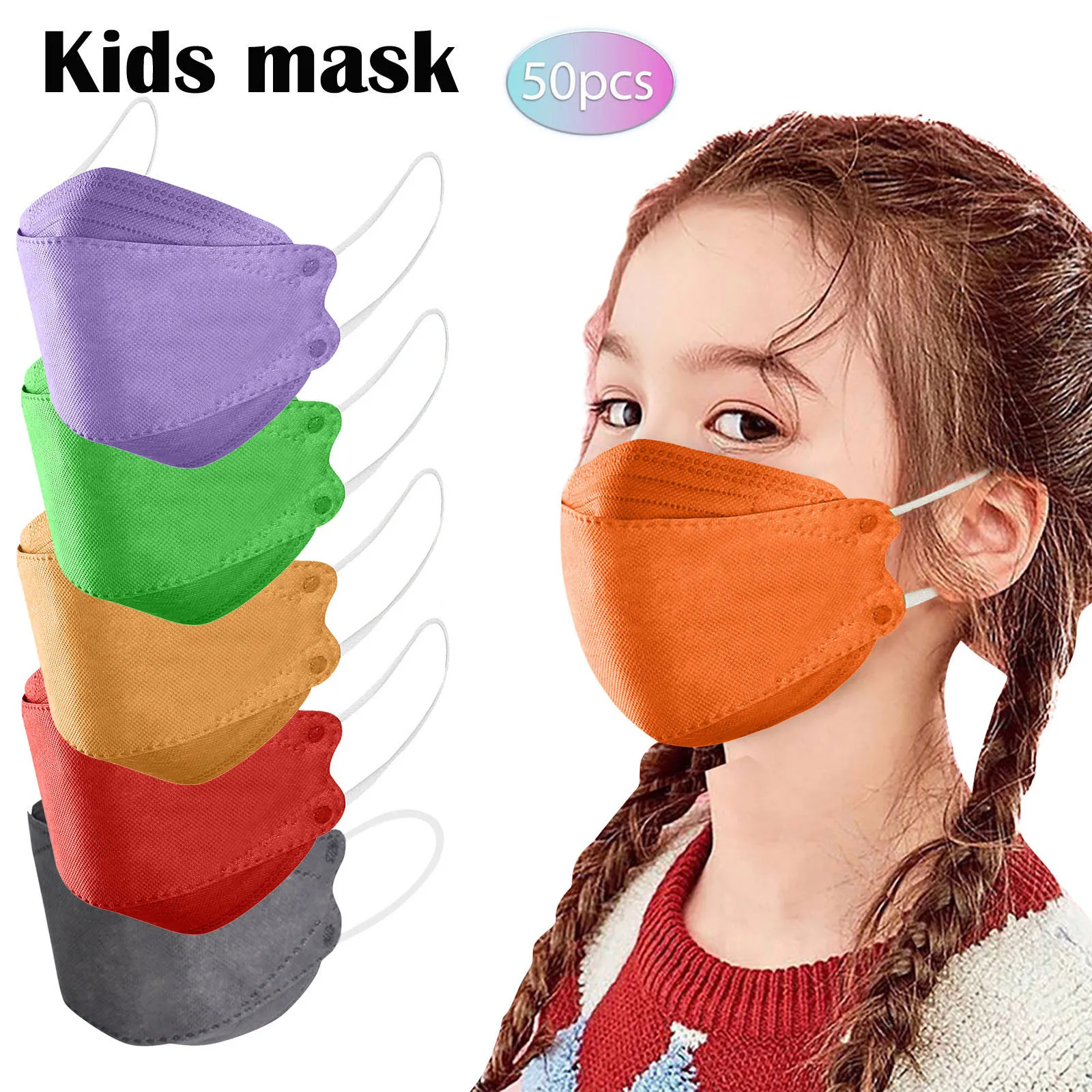 10/50 шт одноразовыеСертифицированный Уход за кожей лица-маска для детей, 4 слоя нетканый защитный 3D Fish_typeПокрытие лица, дышащая и удобная