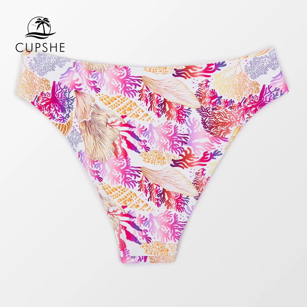 CUPSHE, коралловый принт, средняя талия, бикини, низ, купальник для женщин, сексуальный, средней длины, трусики, короткие, 2022, раздельные бразильские бикини, плавки