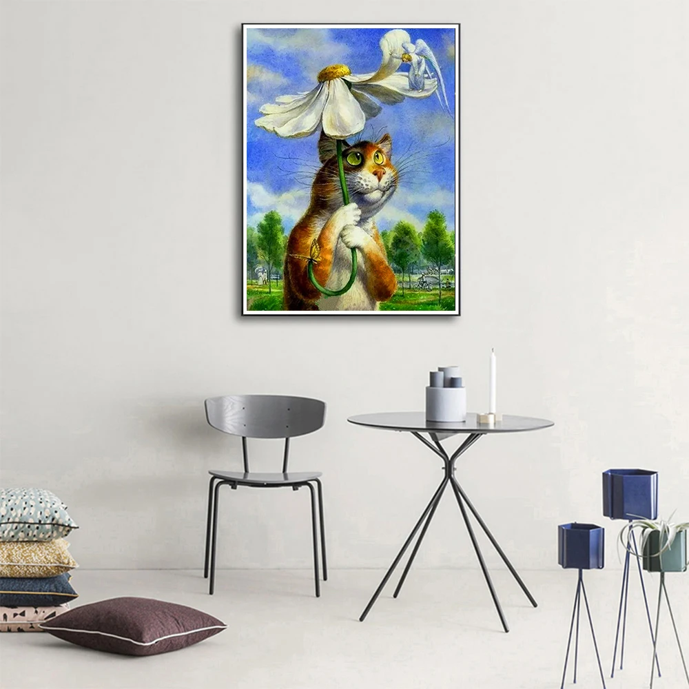 Алмазная 5d Вышивка сделай сам, картина с животными, кошками, цветами, бабочками, вышивка крестиком, квадратная, круглая, мозаика для творчества, хобби