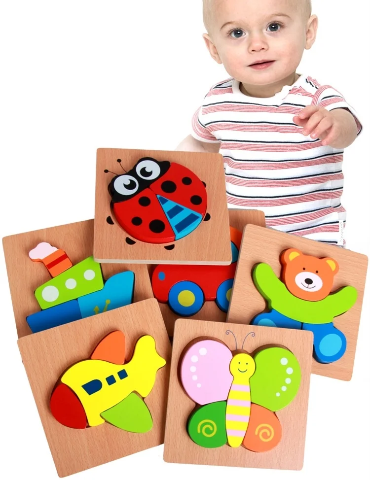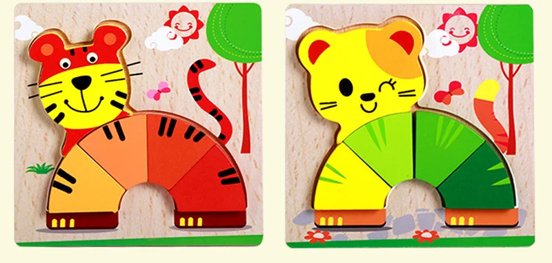 Мультяшный Детский 3D Деревянный пазл головоломка доска Монтессори ...