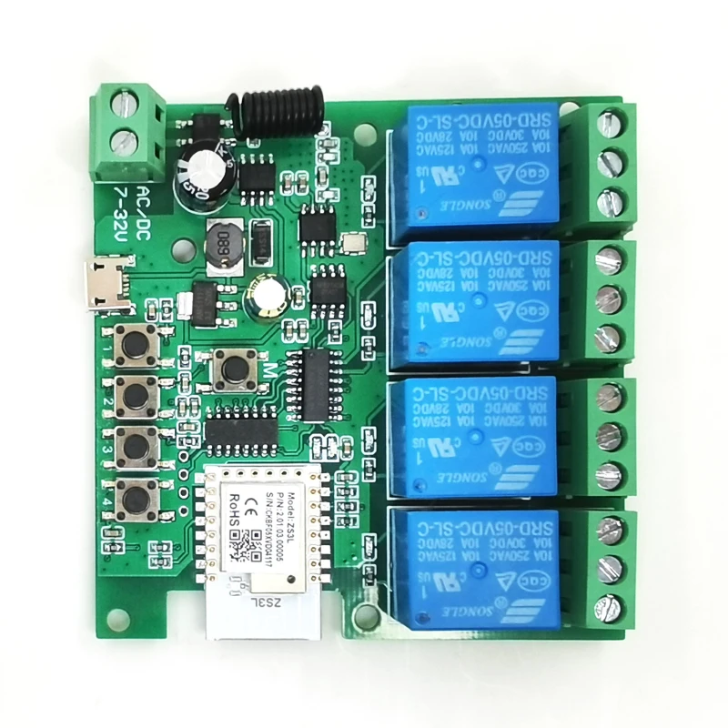 Умный модуль выключателя света Zigbee, 4-канальный модуль выключателя, 51232 В постоянного тока, RF433, 10 А, реле, работает с Alexa Google Assistant,Tuya Smart Life