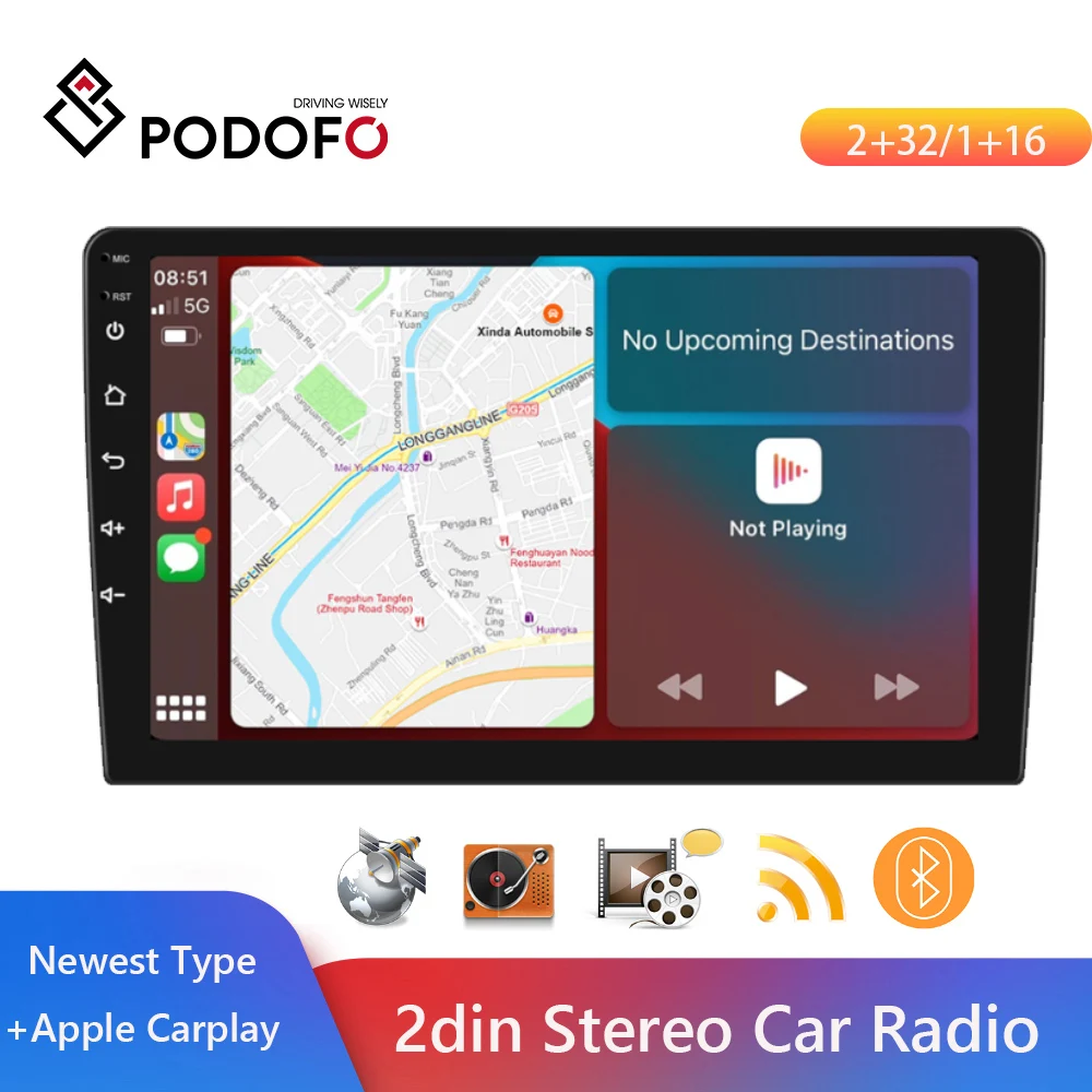 Podofo автомобильный радиоприемник 2 din android Apple CARPLAY ANDROID Bluetooth адаптироваться стерео Мультимедийный плеер Автомобильный аудиоприемник GPS WIFI FM рулевого колеса Управление для Toyota