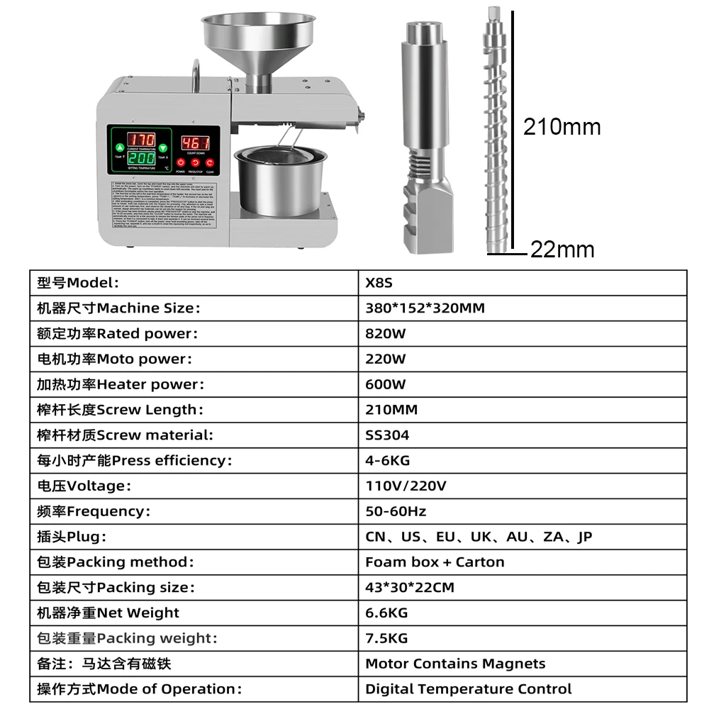 Новинка Масляный Пресс X8S 820 Вт пресс для масла из нержавеющей ст...