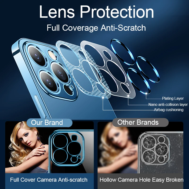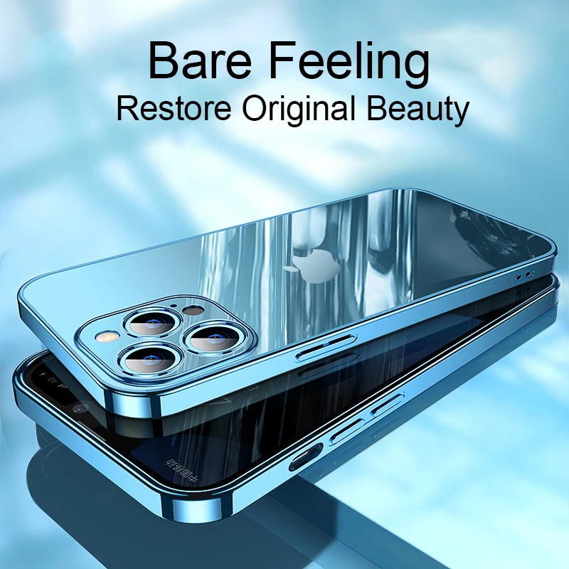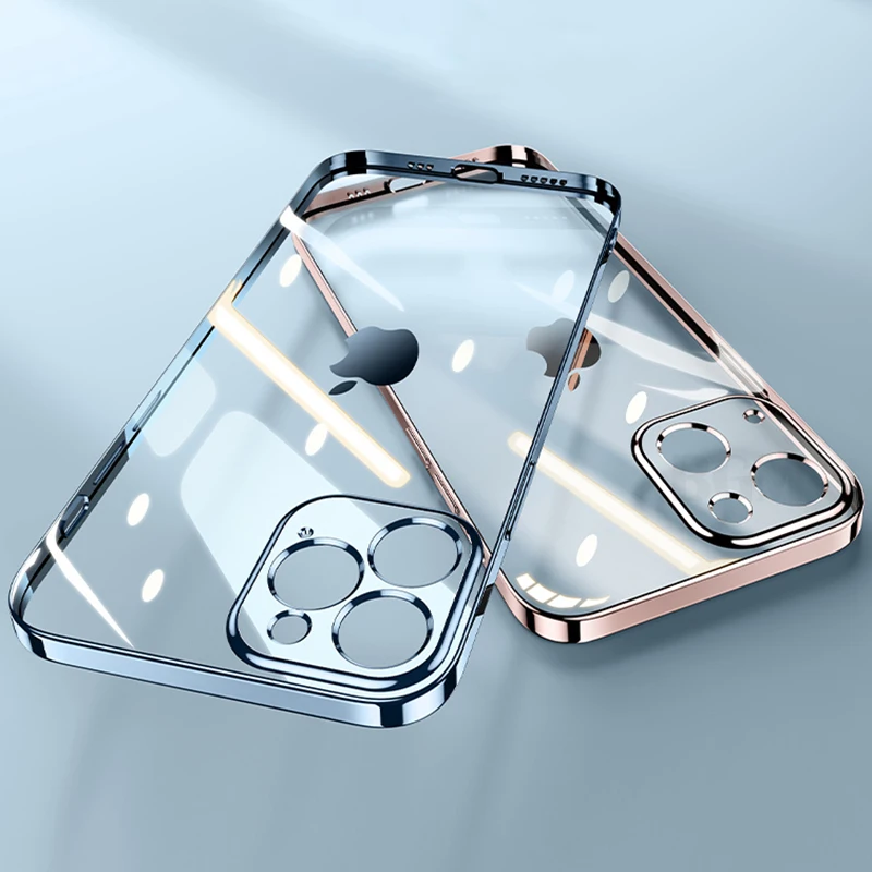 Прозрачный чехол с гальваническим покрытием и квадратной рамкой для iPhone 13 12 11 Pro Max Mini X XR XS 7 8 Plus SE2 iPhone13, мягкий прозрачный роскошный чехол
