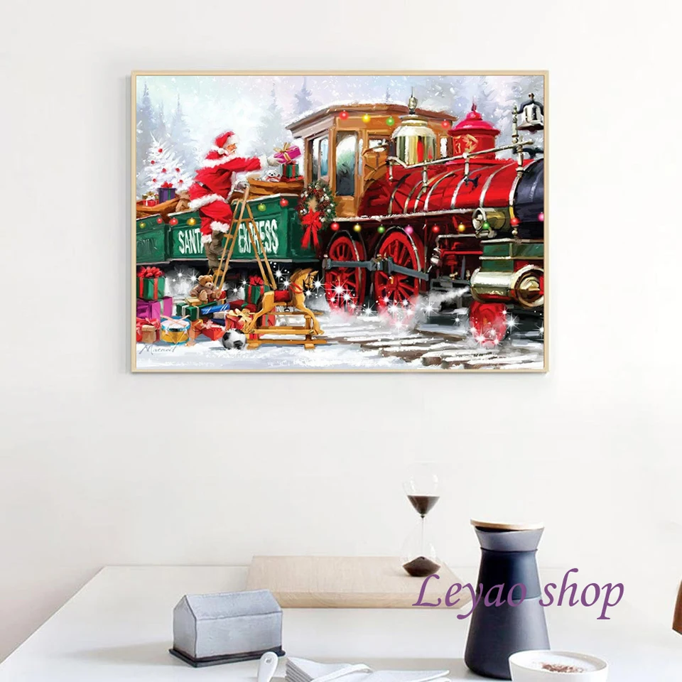 Рождественский поезд зимний пейзаж домашний Декор Картина бриллиантовый рисунок Рождество Санта Клаус Navidad Noel подарки орнамент новый год