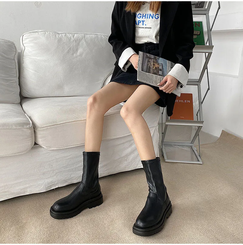 Женские ботильоны без шнуровки, из ПУ кожи, до середины икры