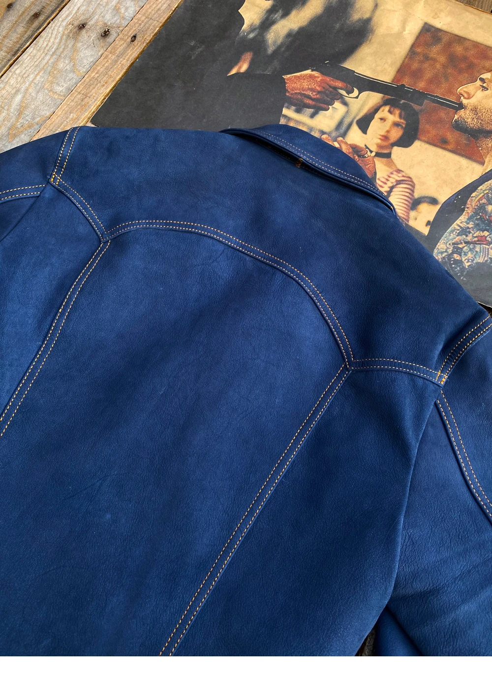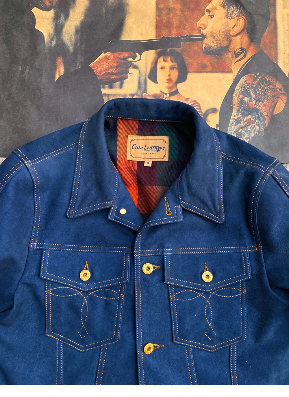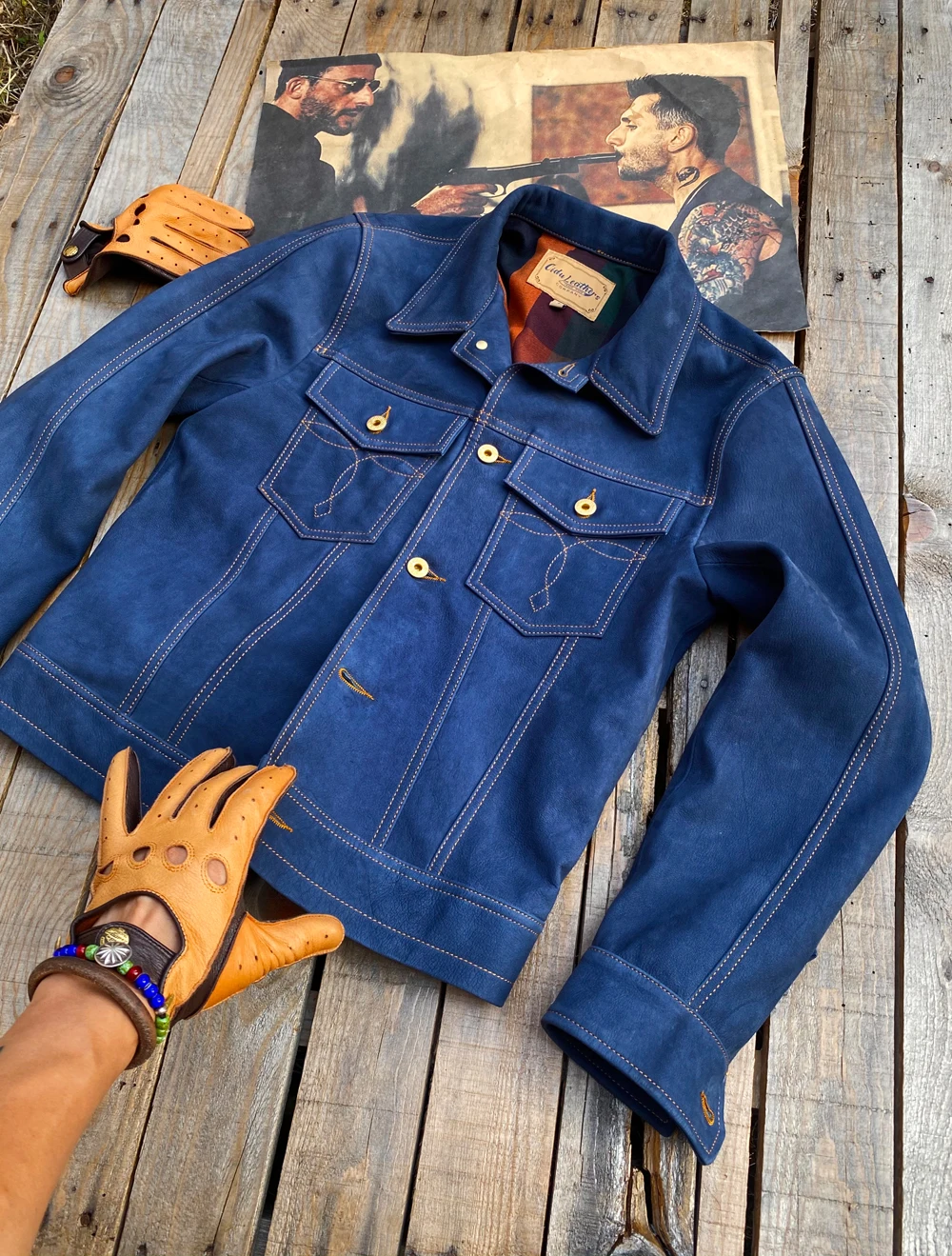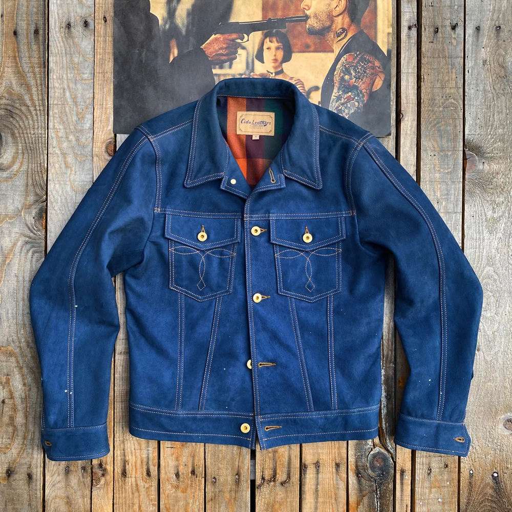 CDD1300 Cidu Азиатский размер супер высшее качество натуральный олень кожа Индиго окрашивание тонкий классический стильный Райдер Тип 3 Куртка