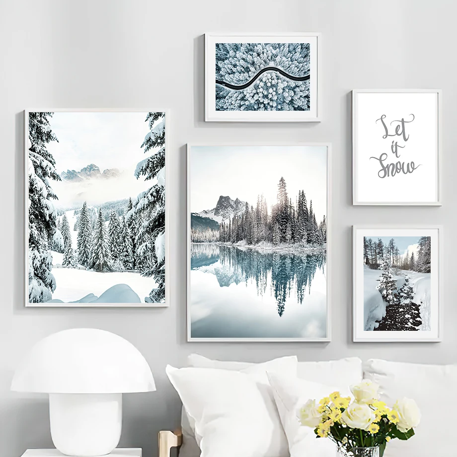 Настенная картина на холсте Белая Гора Снежный Лес Тигр Волк Олень озеро скандинавские постеры и принты настенные картины для гостиной