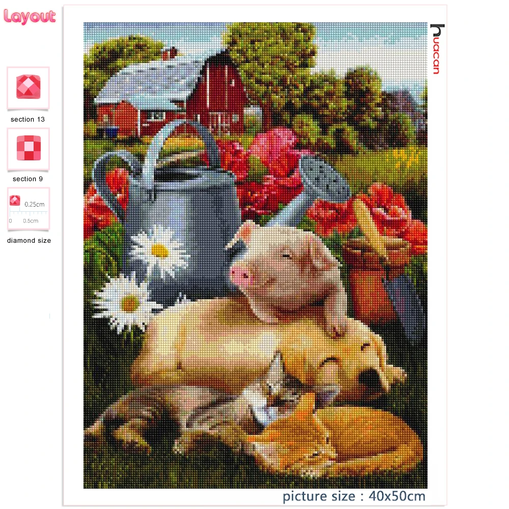 Алмазная 5d картина Huacan, мозаика с изображением животных, собака, свинка, вышивка крестиком, кошка, цветок, домашний декор, хобби