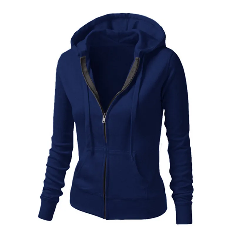 Толстовка Женская однотонная на молнии, с капюшоном и карманами