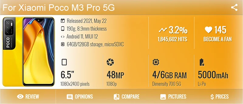 Номер моделиFor Xiaomi Redmi Note 10 5G/POCO M3 Pro 5G M2103K19G M2103K19PI