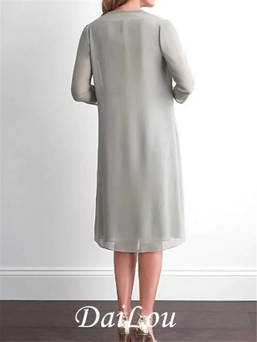 Платье-футляр для матери невесты из двух предметов, элегантное шифо...