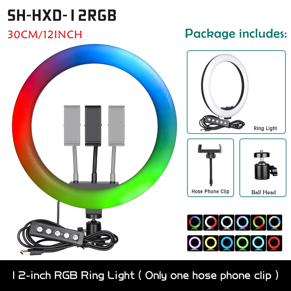 Features 12SH 12inch/30cm RGB Ring Light For Makeup Live Stream