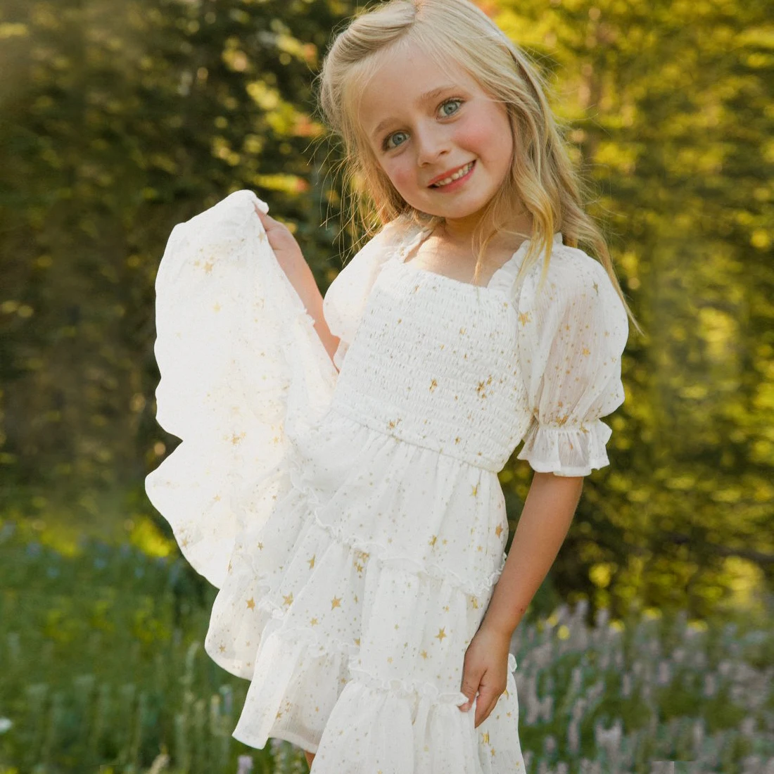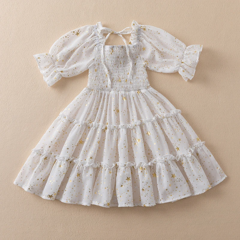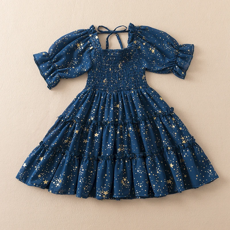 Платье Smock с принтом звезд для девочек, летние платья Chifoon с к...