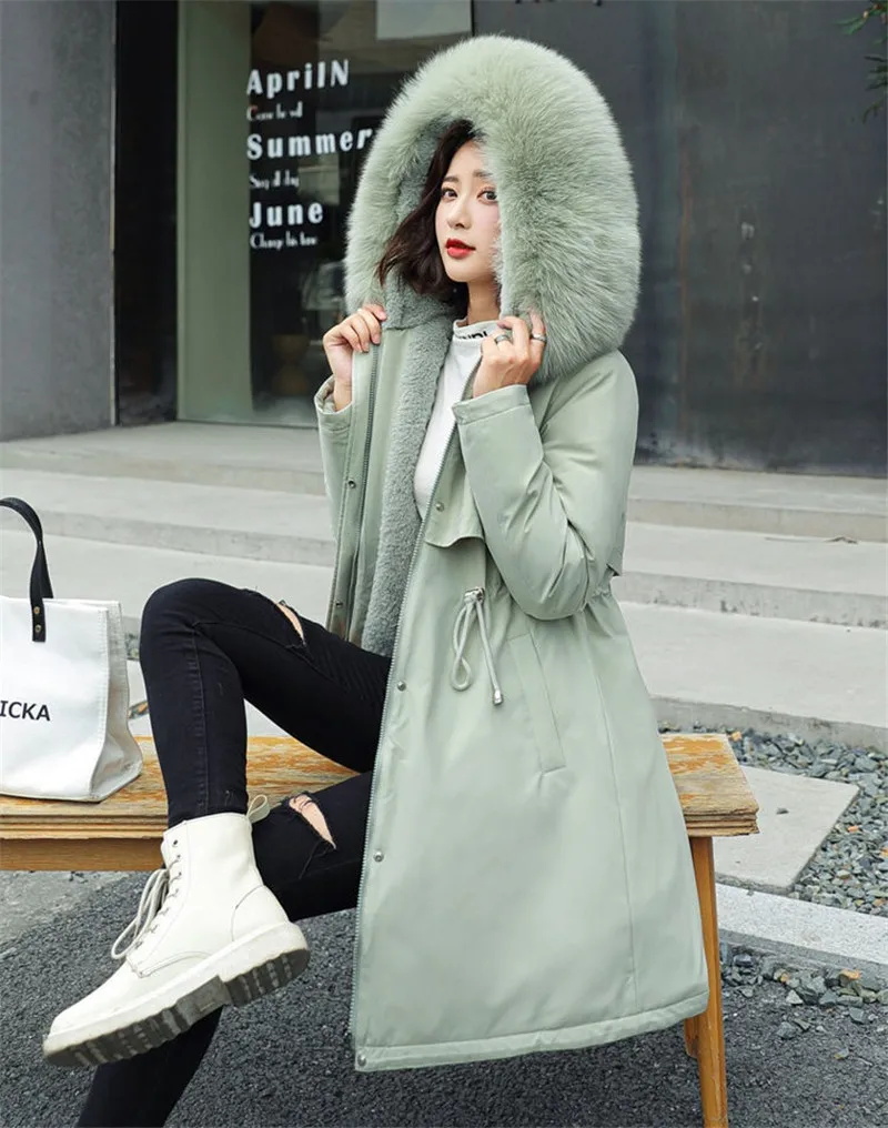 Новинка 2021, зимняя куртка, женские парки, теплая Повседневная парка, одежда, длинные куртки, парка с капюшоном, женское плотное пальто с меховой подкладкой для женщин