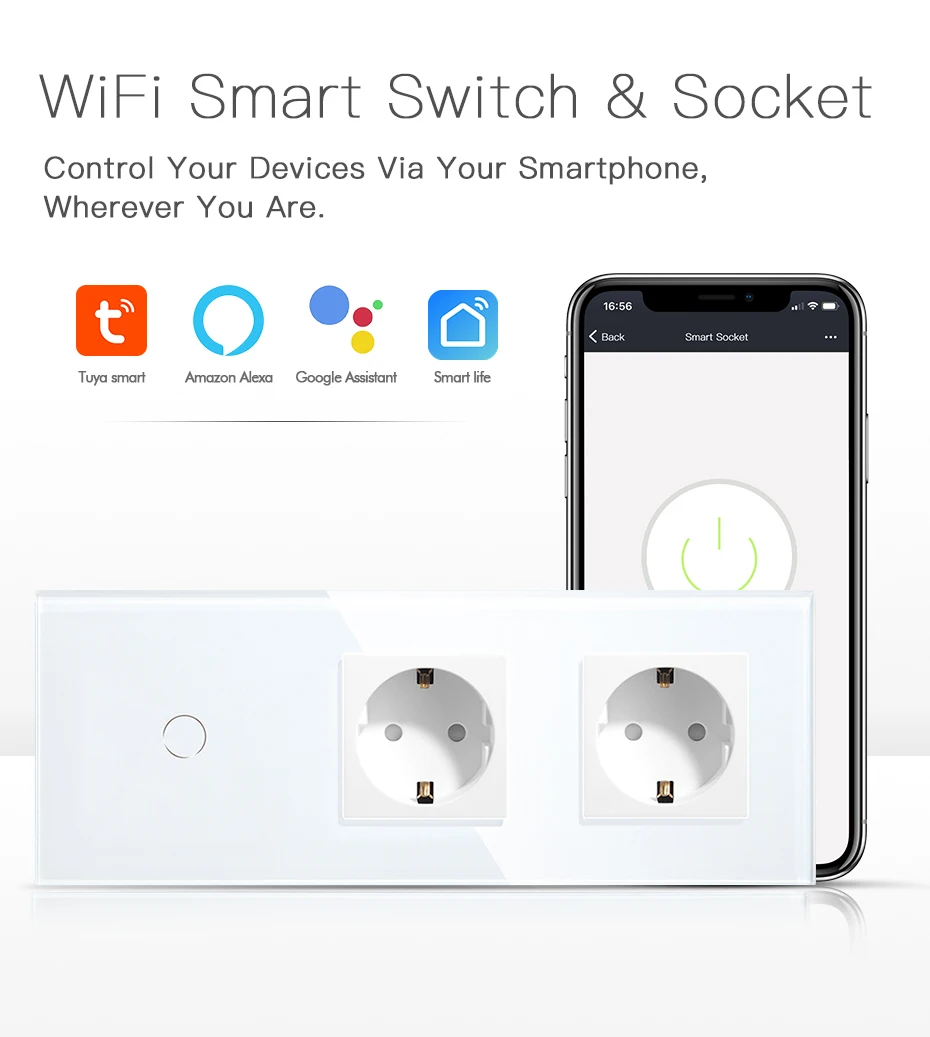 Белый сенсорный выключатель Bingoelec и настенная розетка с прозрач...