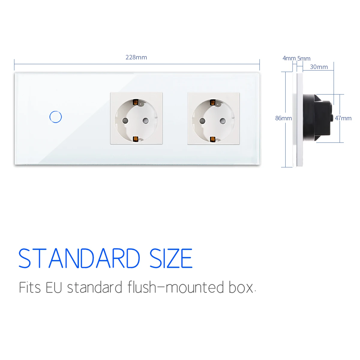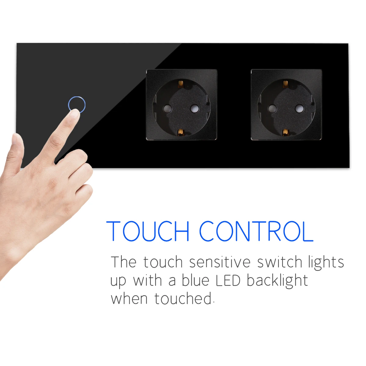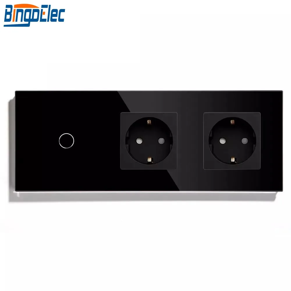 Bingoelec ЕС сенсорный выключатель 1 Г1 Вт сенсорный выключатель двойная 16 А немецкая электрическая настенная розетка переключатель и розетка стеклянная панель выключатель света