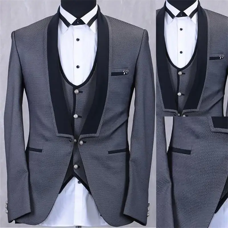 2020 серые мужские костюмы для свадьбы, одежда для жениха, смокинги...