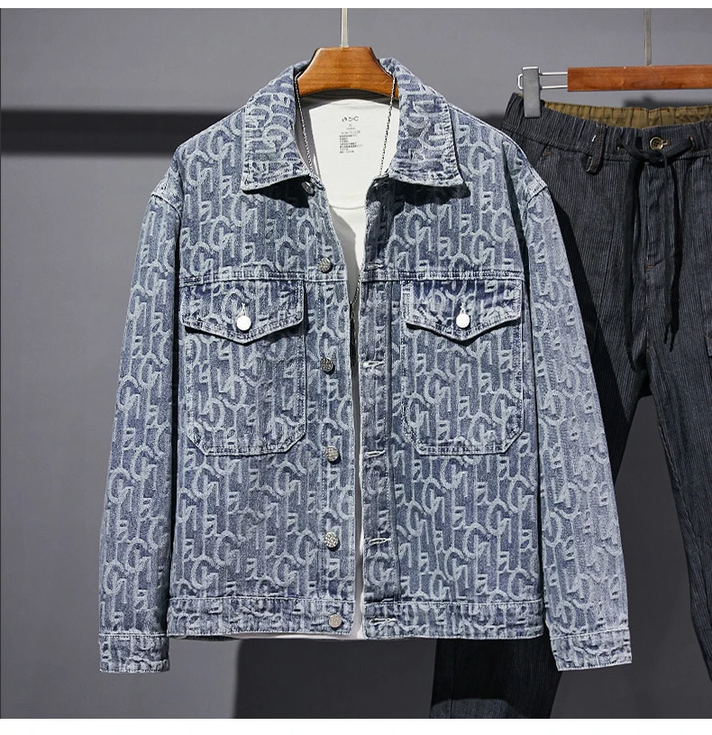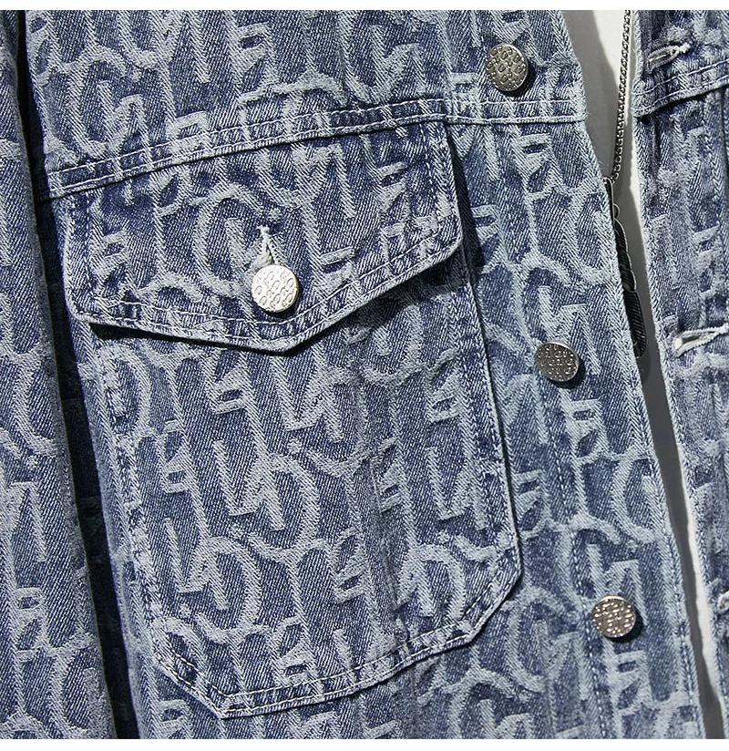 Мужская джинсовая куртка с вышивкой, Повседневная джинсовая куртка, верхняя одежда с длинными рукавами