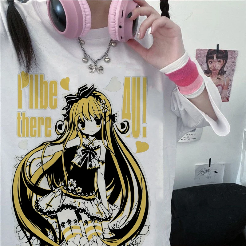 Футболка женская с японским аниме принтом, Повседневная рубашка с к...
