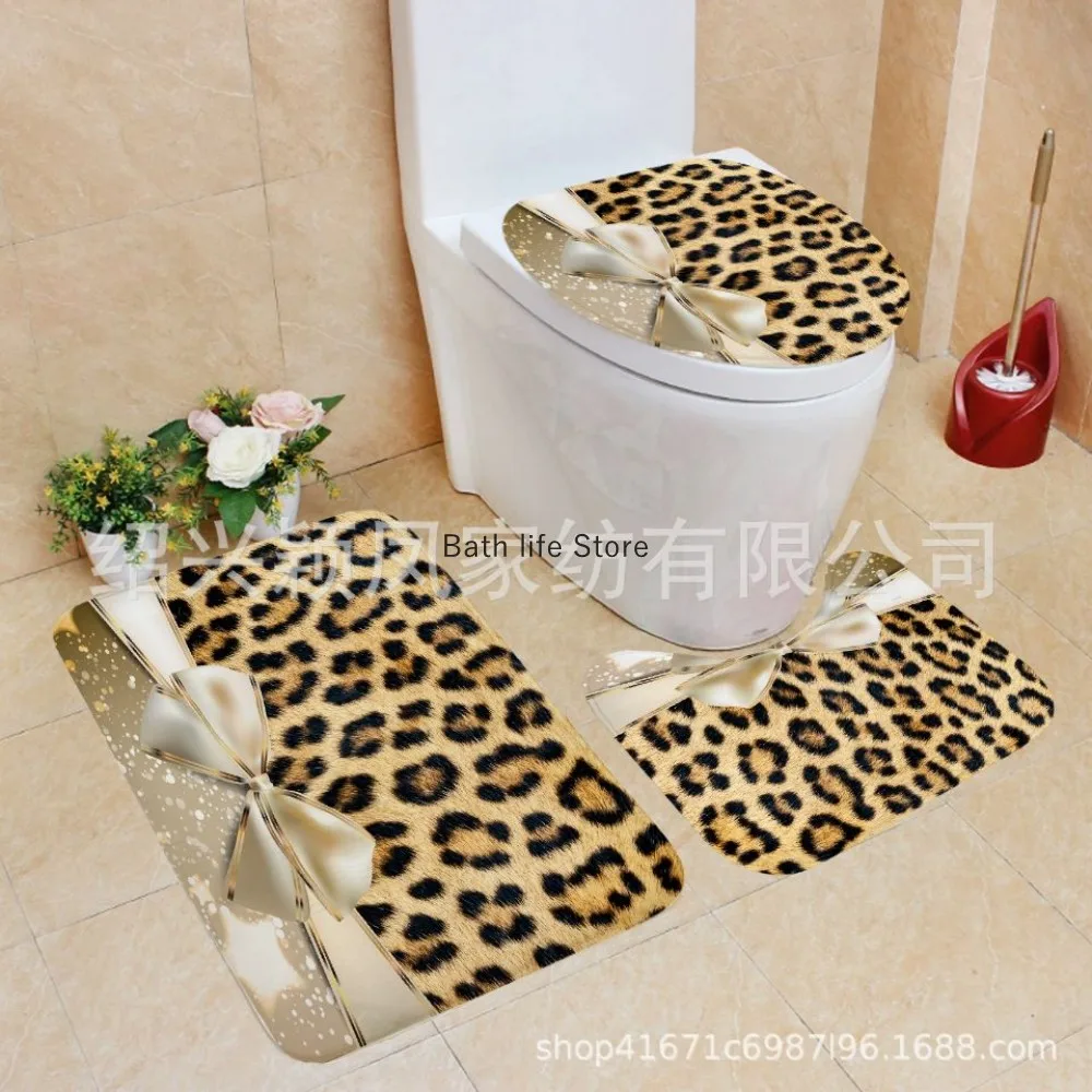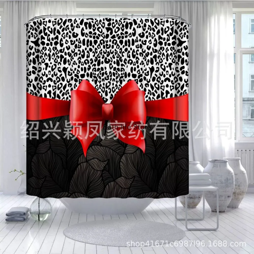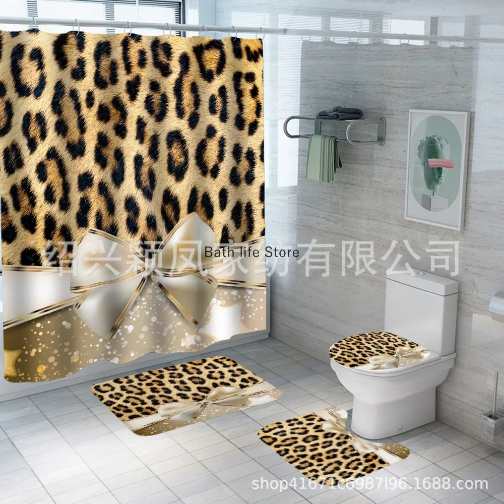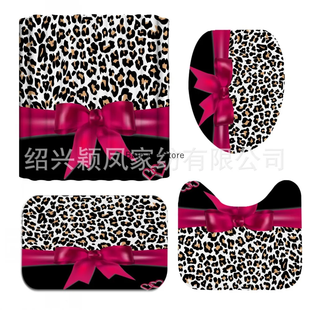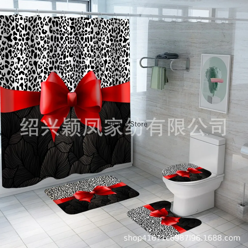 Полосатые леопардовые красные и черные занавески для душа, набор для ванной комнаты, модные шторы с узором, Нескользящие напольные и коврики для туалета, наборы ковриков