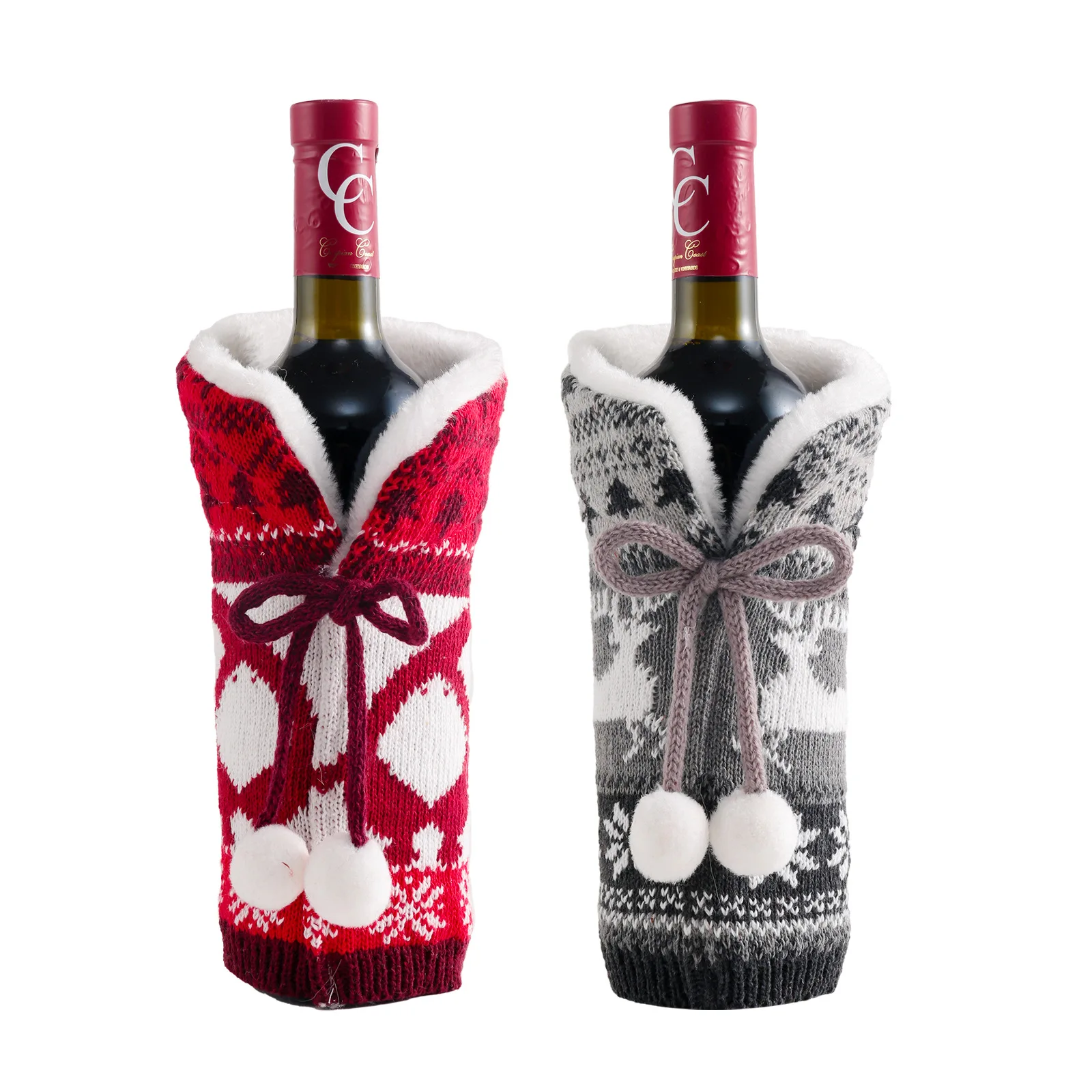 Новый рождественский винный набор, вязаный винный набор, украшение для отеля, ресторана, домашняя отделка, винный набор, декоративные принадлежности