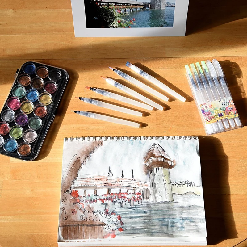 6 шт Портативный маркеры Краски щетка воды Цвет Кисть мягкая вода Ц...