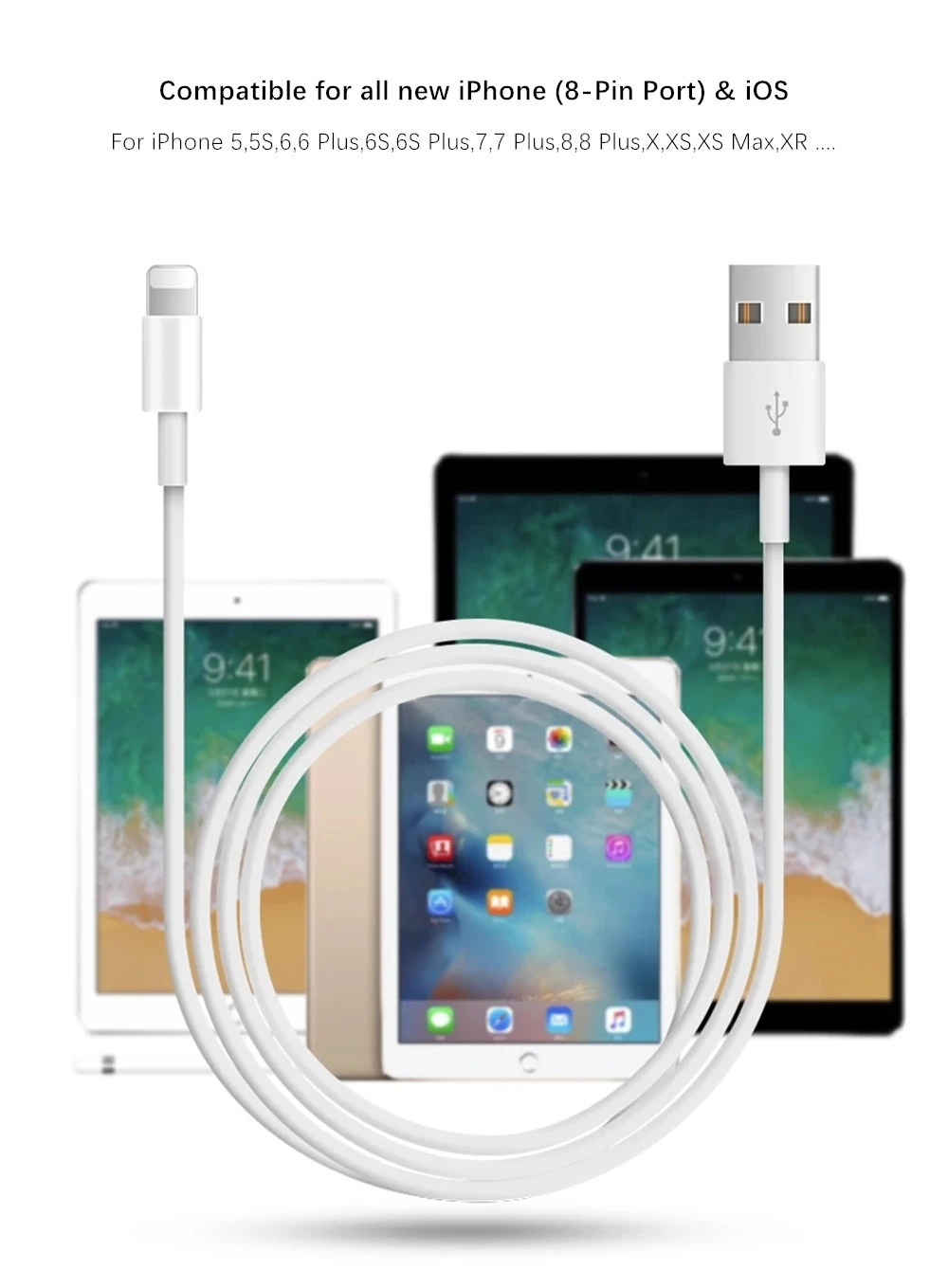 USB-кабель для быстрой зарядки iPhone 8 7 6 6S Plus X XR XS 11 12 P...