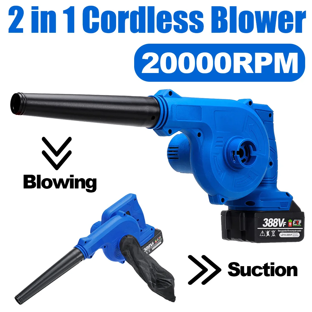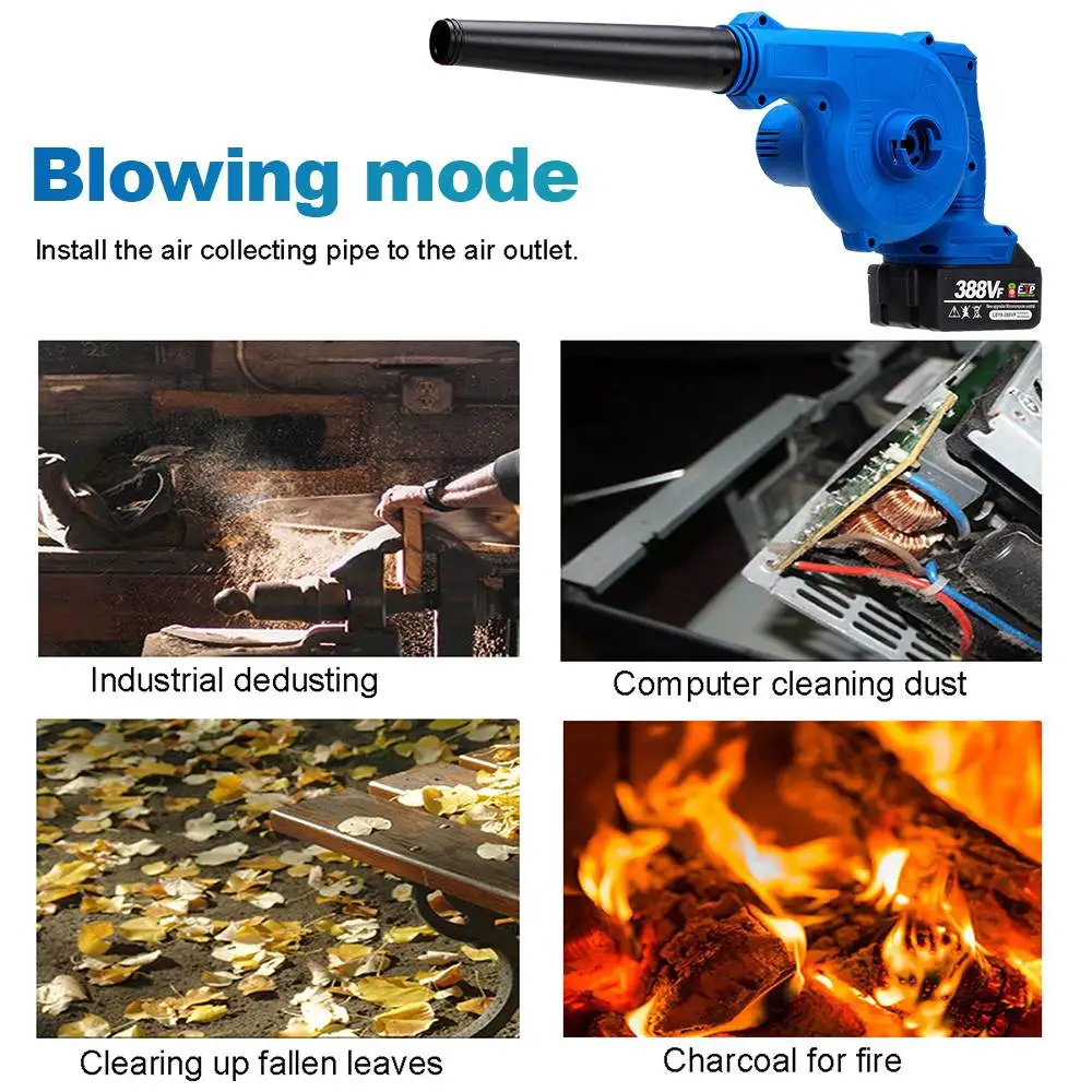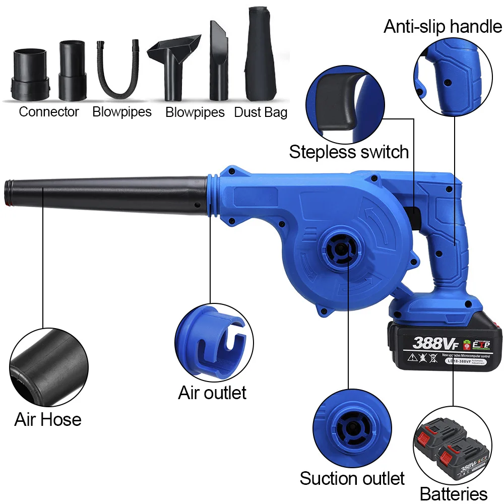 Особенности:-Функция выдувания 2 в 1 свободно контролируется, легко обрабатывается в любом уголке дома.-Сильный Интеллектуальный мотор без щеток может достичь пониженной скорости.-Высокомощный двигатель с технологией постоянной температуры используется для обеспечения стабильной работы при высокой интенсивности работы, он не устанет, даже если вы долго работаете.-Если вы измените место, где вставлено сопло, вы можете использовать его для удаления пыли и сбора пыли.-Ветровое лезвие изготовлено из хорошего пластика, который обладает повышенной прочностью и тем самым обеспечивает более сильную ветряную мощность.-Высокомощный медный сердечник обеспечивает Мощное всасывание и ветер-Компактный, легкий и простой в использовании, вентилятор быстро очищает листья и мусор.Беспроводной дизайн, эргономичный дизайн и приятная ручка, наш воздуходувка дает вам полную и удобную мобильность.-Эргономичный дизайн, нескользящая ручка, долгое время использования не повредит руки.Использование:-Очистка сельскохозяйственной техники, деревообрабатывающих машин, сбора пыли в рабочих местах, выдувания капель воды после очистки и сушки.-Очистите от пыли Материнские платы, чехол компьютера и источник питания. Легко очищает пыль/волосы от постельных принадлежностей, углов, днища кровати, Ковров, мебели и т. Д.