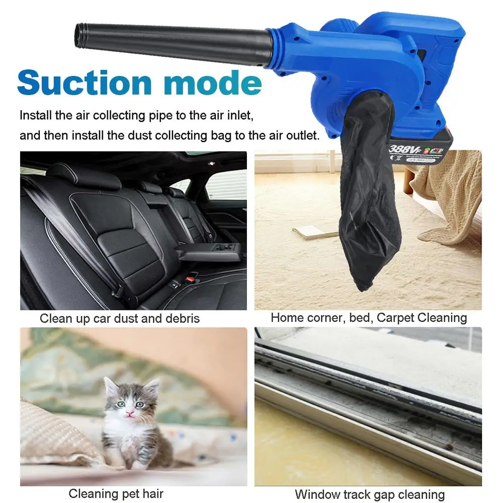 1600 Вт Беспроводная электрическая Воздуходувка 2 в 1, воздуходувка для выдувания и всасывания листьев, пылесборник для ПК, вакуумный очиститель для Makita, батарея 18 в