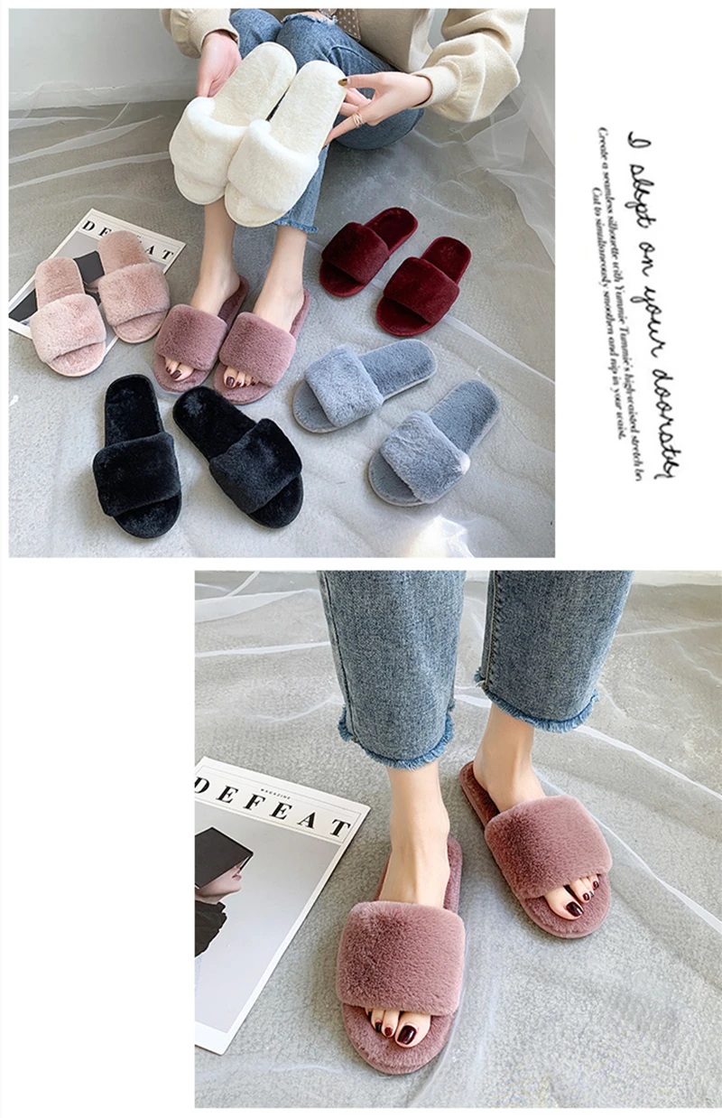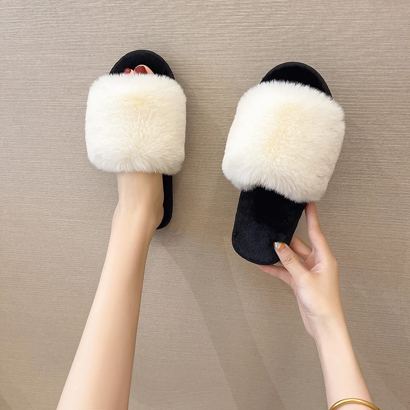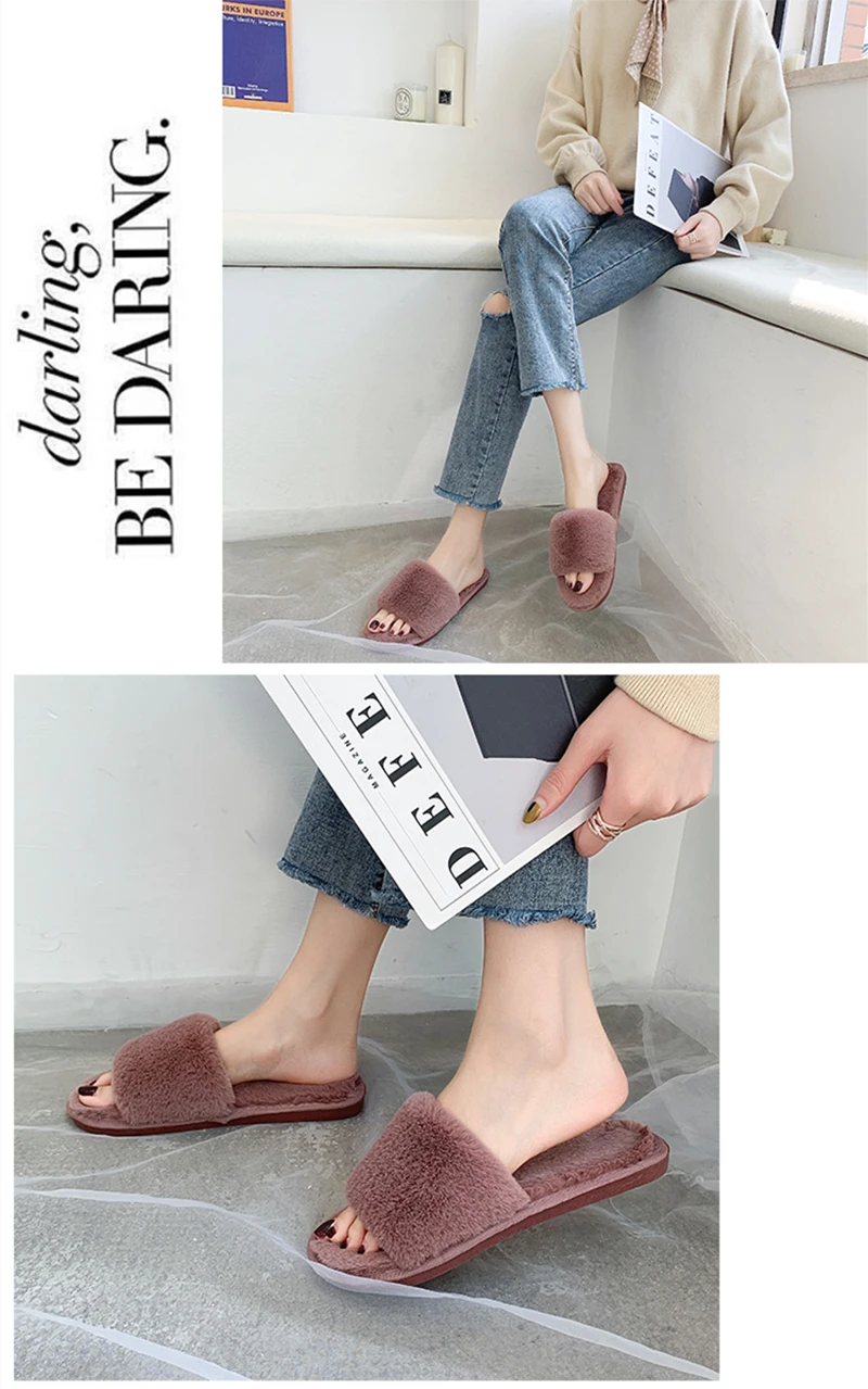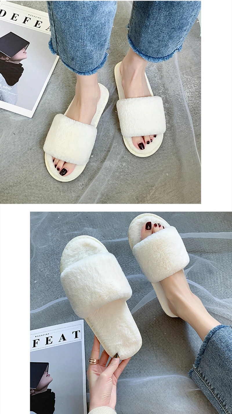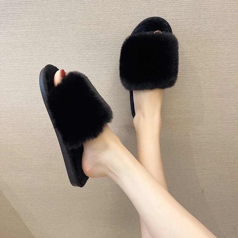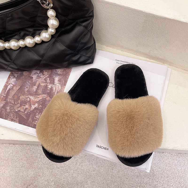 Женские пушистые шлепанцы, сланцы из искусственного меха, мягкая обувь на плоской подошве, шлепанцы со знаменитостями, 2021