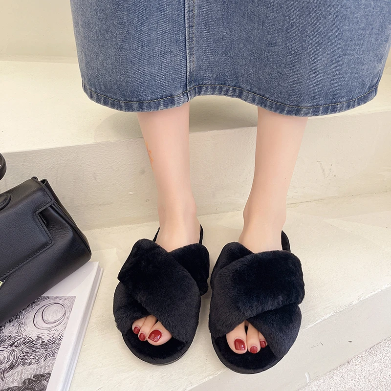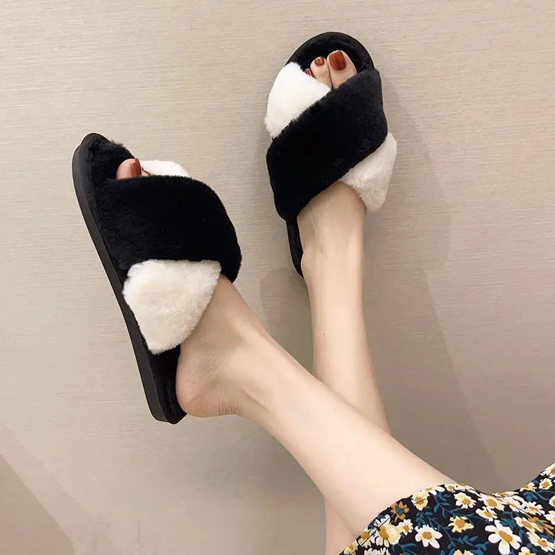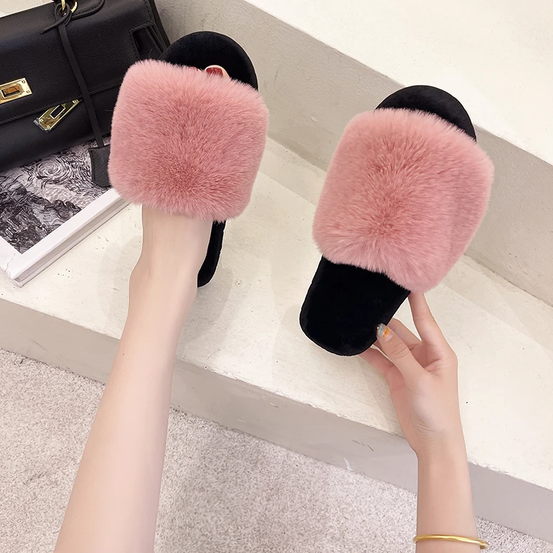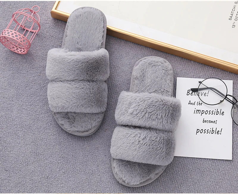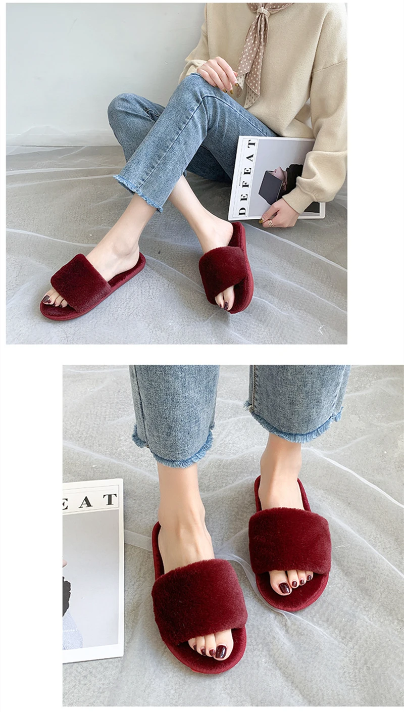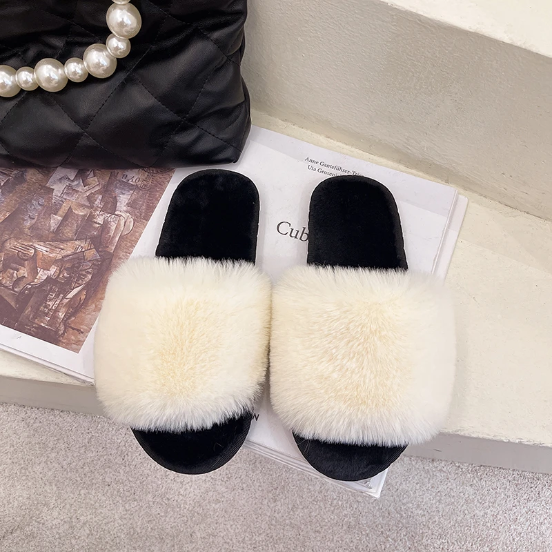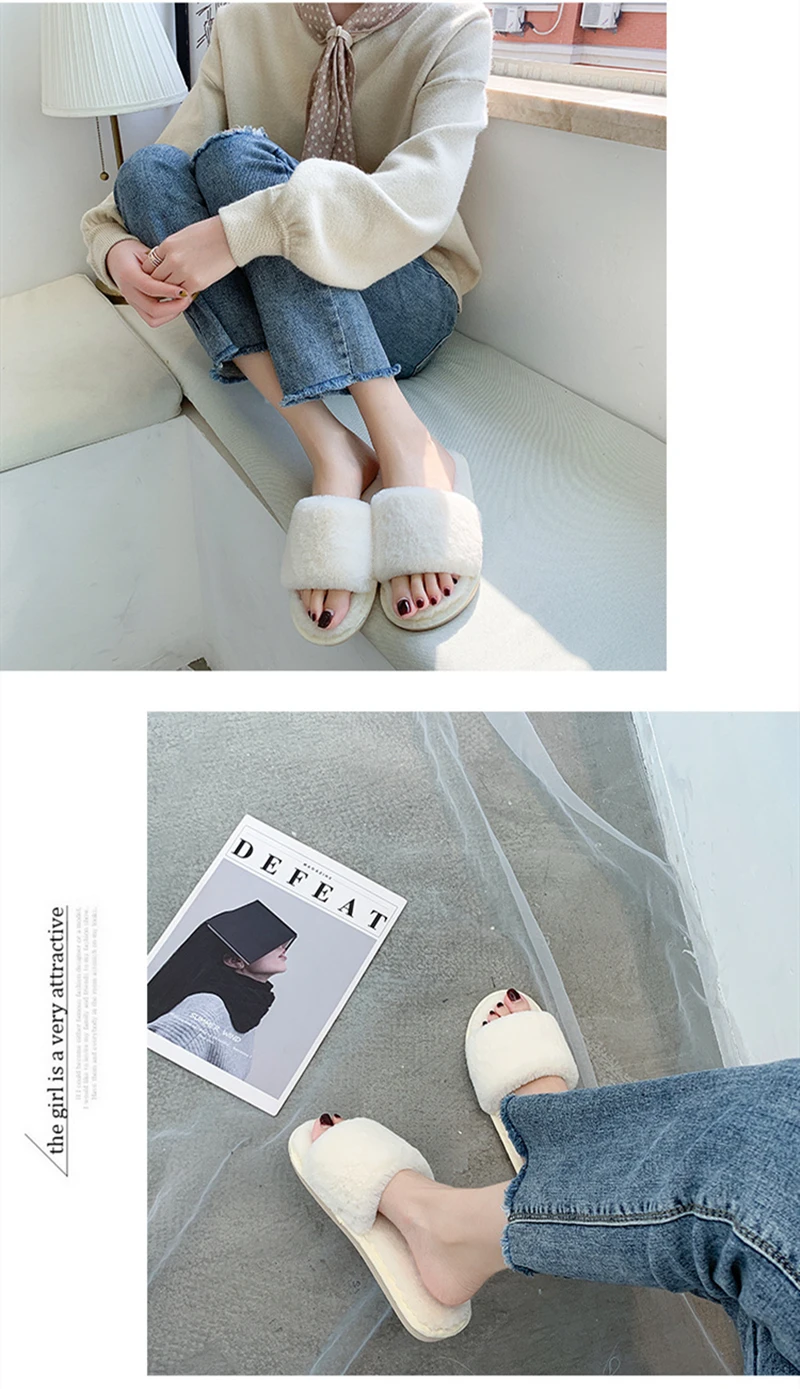 Женские пушистые шлепанцы, сланцы из искусственного меха, мягкая обувь на плоской подошве, шлепанцы со знаменитостями, 2021