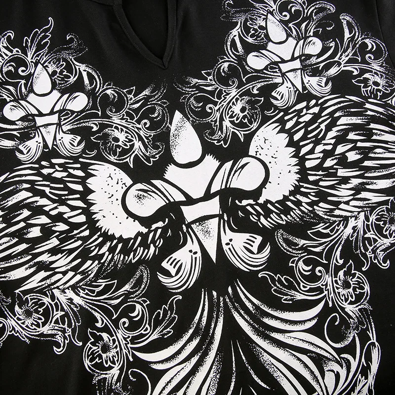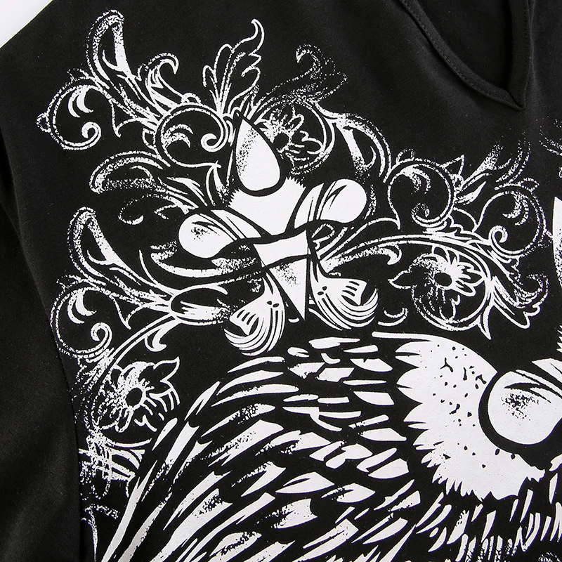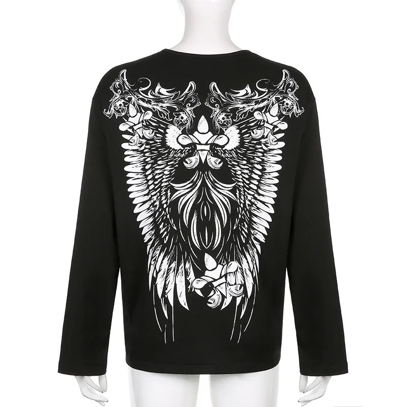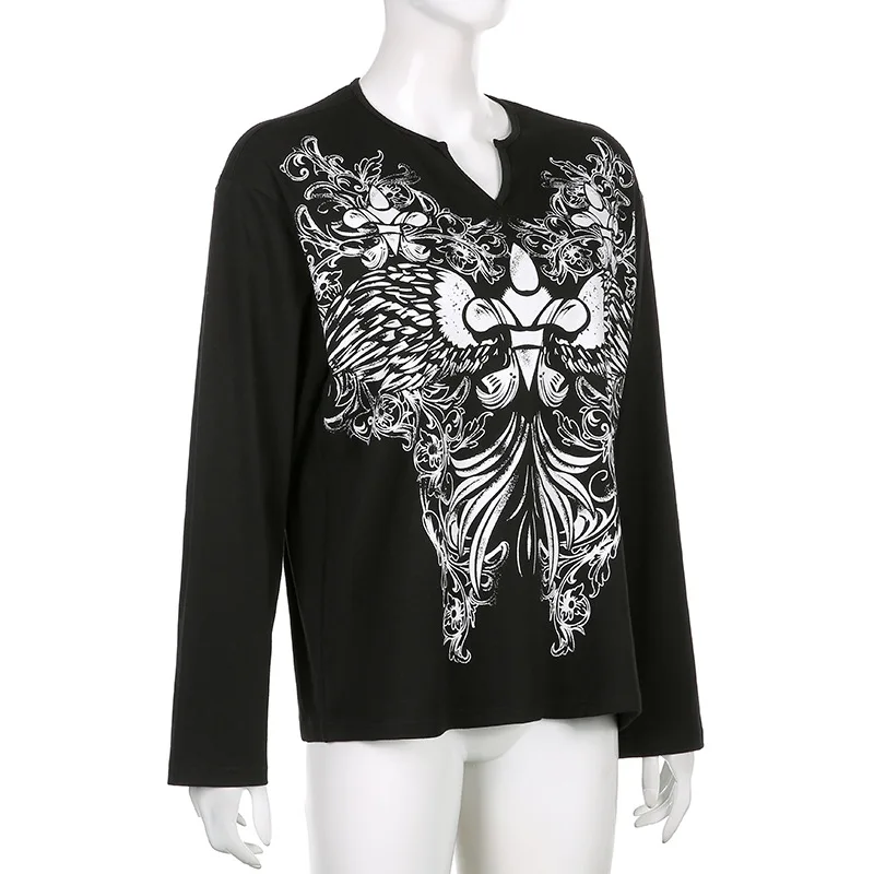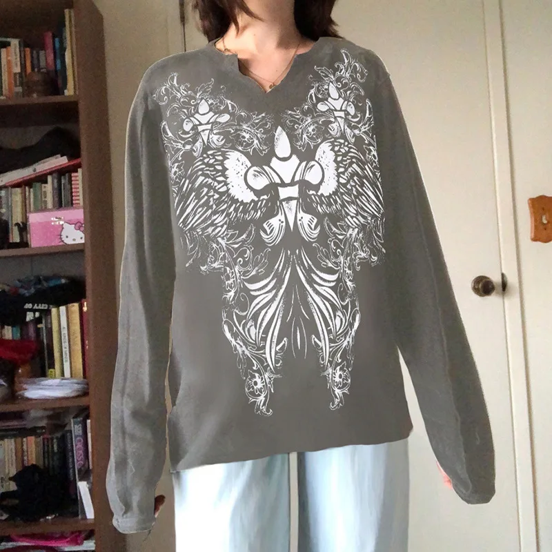Готические футболки оверсайз с графическим принтом, повседневные топы в стиле ретро, Grunge Fairycore, свободная уличная одежда, одежда темных кругов, 90S, Осенний ТопОбратите внимание: