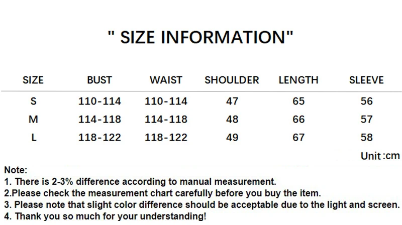 2. Пожалуйста, внимательно проверьте таблицу размеров. Особенно талия и бедра. Из-за различных партий может быть отклонение в 3 см